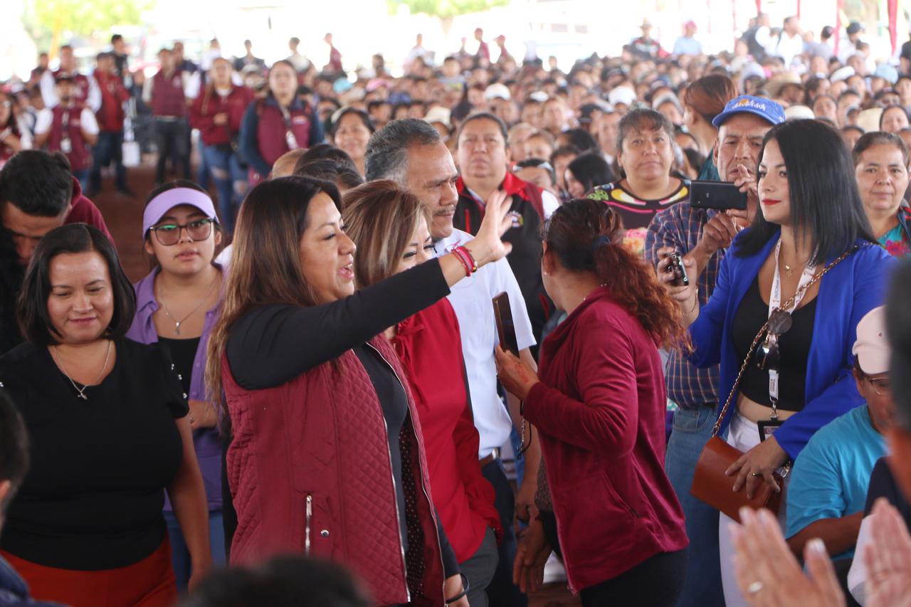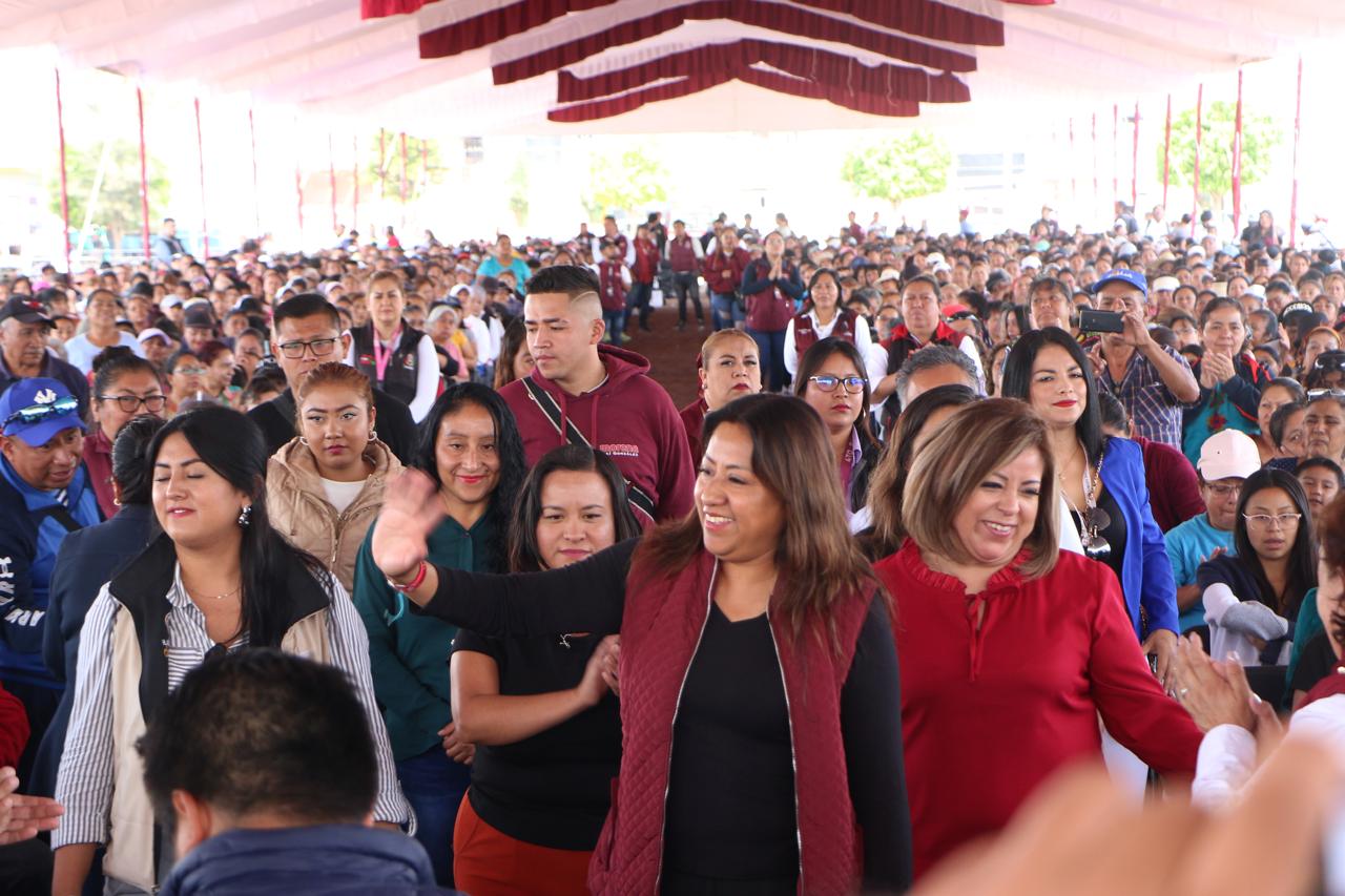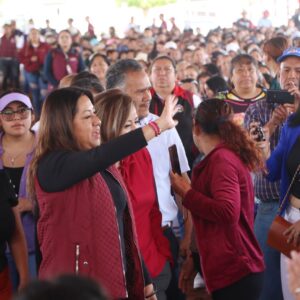 La Presidenta de Chimalhuacán informó a los beneficiarios del programa municipal que la gobernadora Delfina Gómez visitó el municipio el domingo pasado para dar el banderazo inicial de una obra estatal de construcción de pavimento de concreto hidráulico en la calle “De La Hacienda” del Ejido de Santa María, donde también anunció que el gobierno del Estado rehabilitará el Deportivo Herreros, lo cual beneficiará a los habitantes de la localidad. “En nuestra administración, nunca tuvimos una sola obra del anterior gobierno del Estado, y hoy a menos de un año de su administración, ya nos trajo una obra la Gobernadora y vienen más”, destacó la Presidenta.