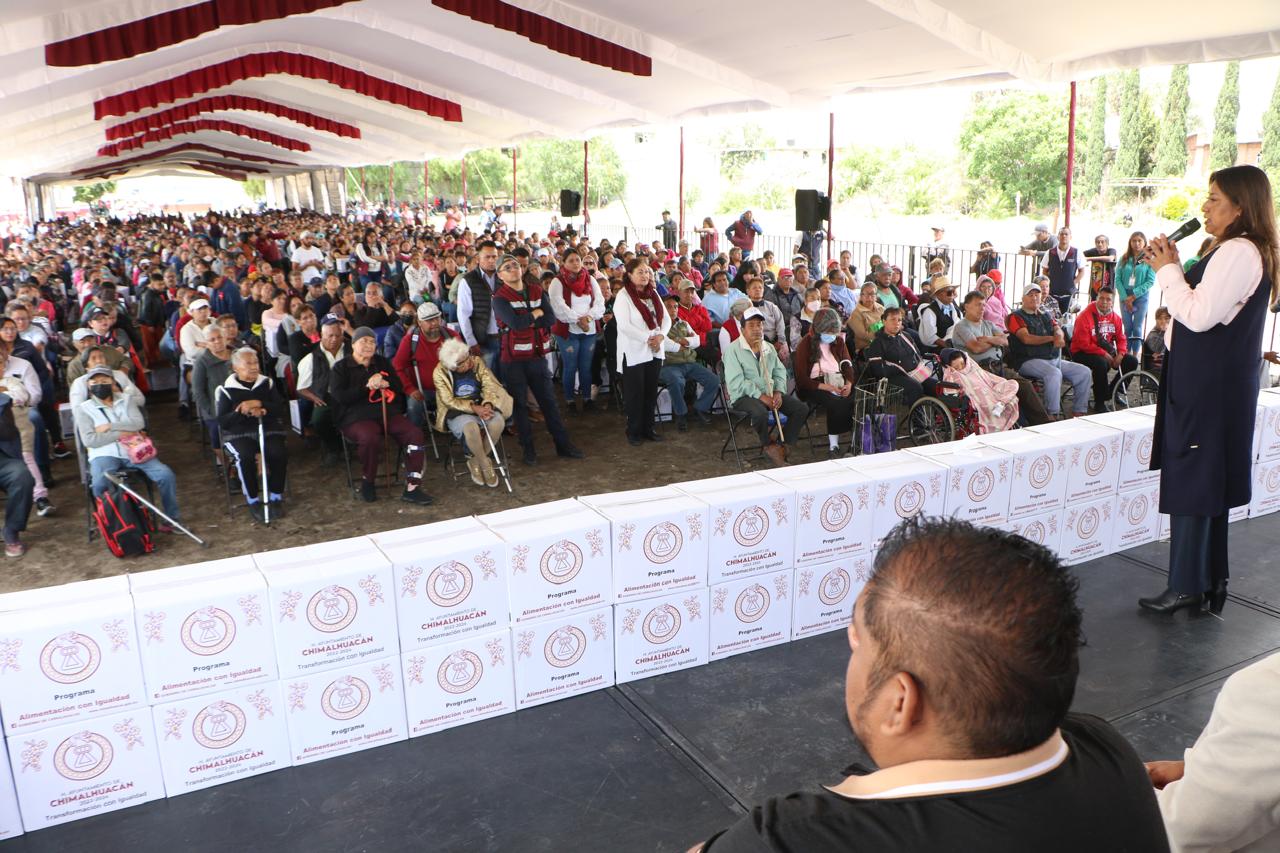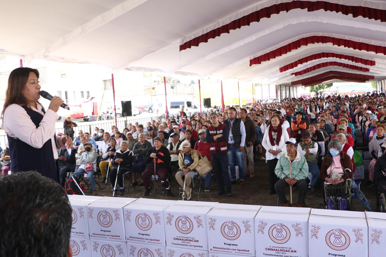 Durante el cuarto día de entrega del Programa “Alimentación con Igualdad” a habitantes de 29 barrios y colonias, la Alcaldesa Xóchitl Flores Jiménez les pidió su colaboración para bien aprovechar las obras y programas sociales que finalmente se hacen con recursos públicos y para bien de todas y todos.