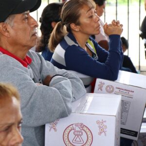 Hoy recibieron su Canasta Alimentaria casi dos mil habitantes de San Agustín Atlalpulco, San Lorenzo, Tequexquinahuác, Rancho Ganadero, 17 de Marzo, Buenos Aires, Israel, Los Olivos, La Joyita, Filiberto Gómez, Progreso de Oriente, Cerro de las Palomas, Adolfo López Mateos, Miramar, Fraternidad, Villa Los Colorines y Tierra Santa, entre otros barrios y colonias.