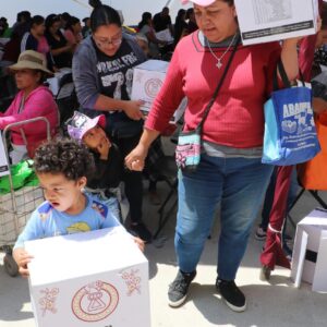 Al concluir la segunda entrega de más de 12 mil despensas en el Barrio Vidrieros, la Presidenta Municipal, Xóchitl Flores Jiménez, solicitó la ayuda de padres y madres de familia con la entrega oportuna de documentación de sus niños a fin de que accedan al apoyo del programa “Regreso a Clases, Transformando la Educación con Igualdad” en septiembre próximo.