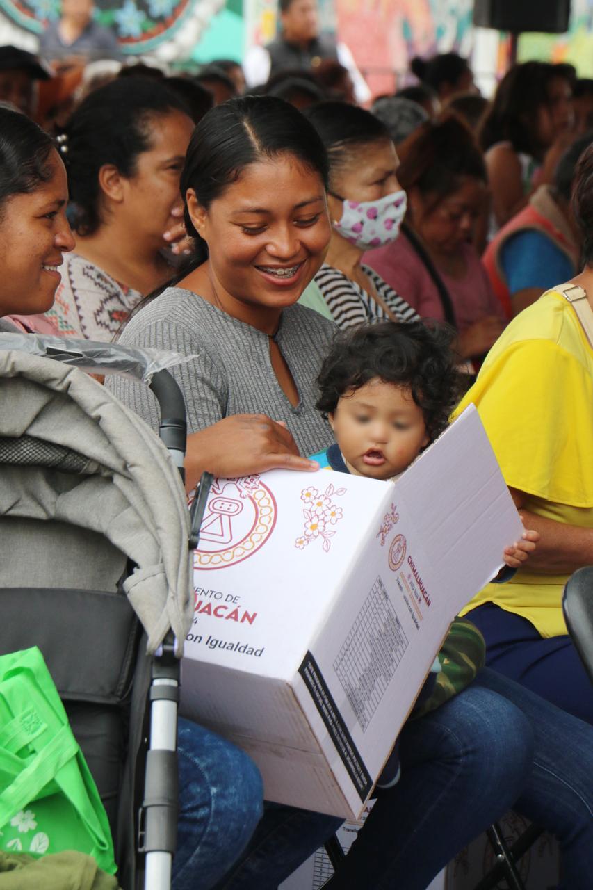 Al concluir la segunda entrega de más de 12 mil despensas en el Barrio Vidrieros, la Presidenta Municipal, Xóchitl Flores Jiménez, solicitó la ayuda de padres y madres de familia con la entrega oportuna de documentación de sus niños a fin de que accedan al apoyo del programa “Regreso a Clases, Transformando la Educación con Igualdad” en septiembre próximo.
