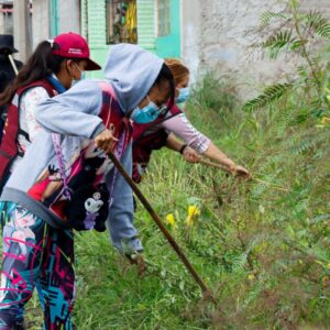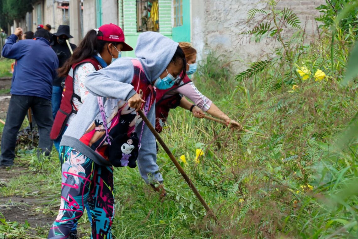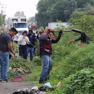 El Gobierno Municipal de Chimalhuacán llevó a cabo una Jornada de Limpieza en Corte Portezuelos y calle Ferrocarrileros, de Ejido de Santa María, con la participación de más de cien servidores públicos adscritos a Tesorería y sus departamentos de Recursos Humanos, Mercados, Tianguis y Espectáculos, en colaboración con todas las áreas recaudadoras.