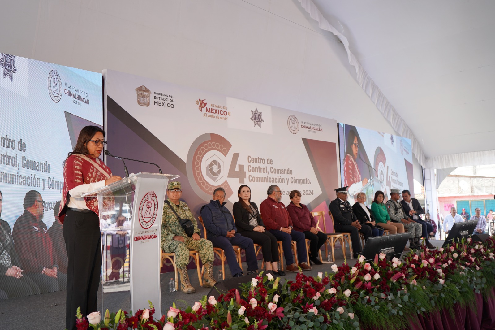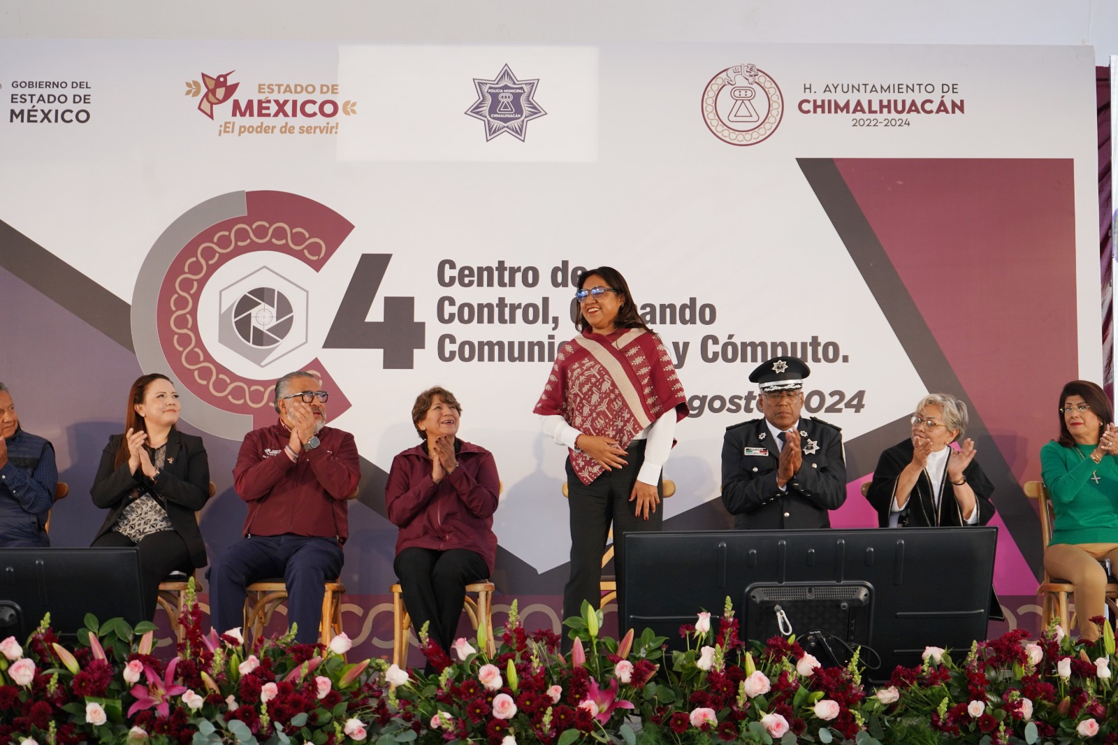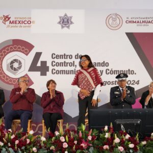 La Presidenta Municipal de Chimalhuacán, Xóchitl Flores Jiménez, acompañada por la Gobernadora del Estado de México, Delfina Gómez Álvarez, inauguró el nuevo Centro de Control, Comando, Comunicación y Cómputo (conocido como C4) y el Centro de Prevención y Atención Social de la Violencia y el Delito de Chimalhuacán, con lo cual se da otro paso para la protección de la población, gracias a una inversión de más de 185 millones de pesos.