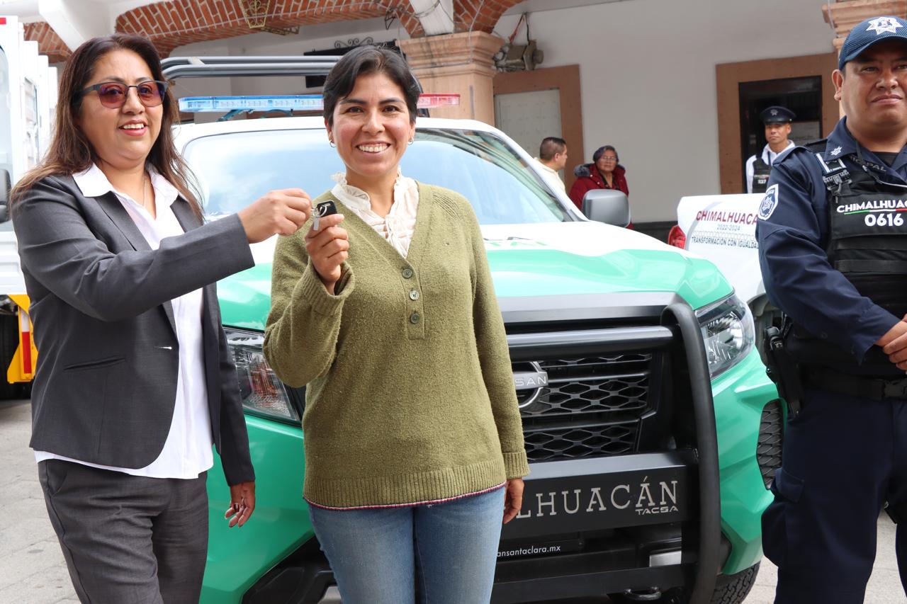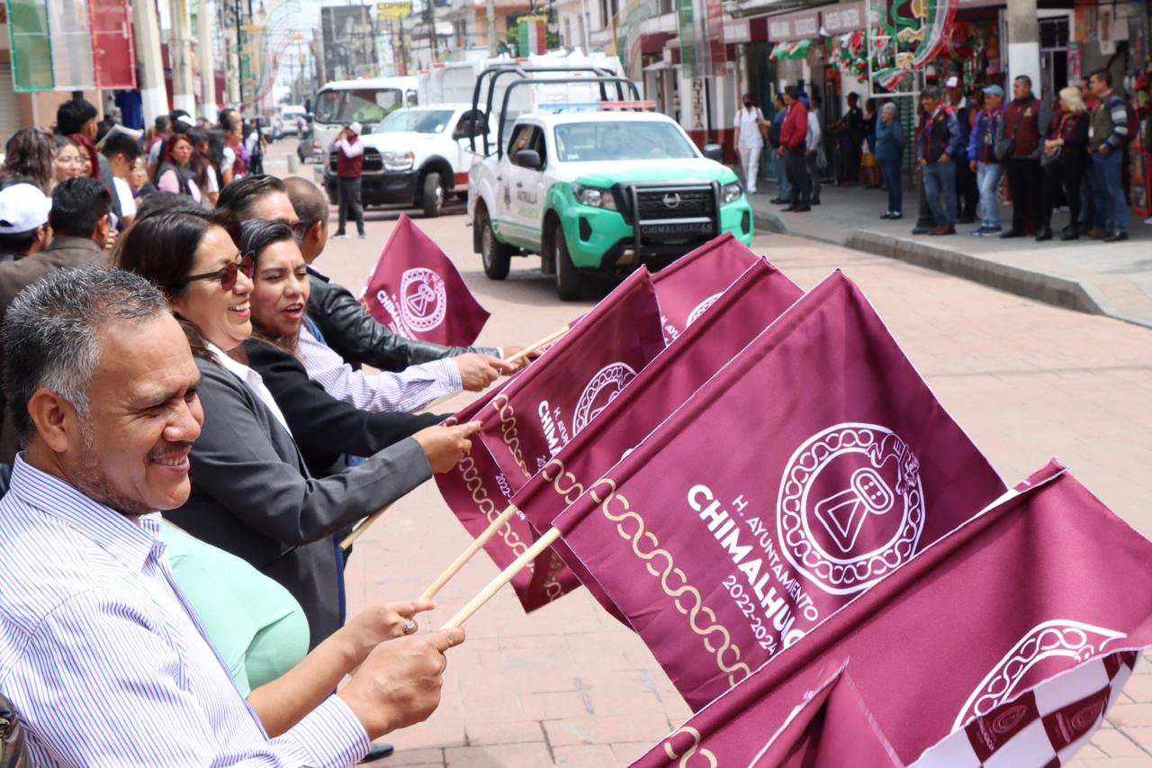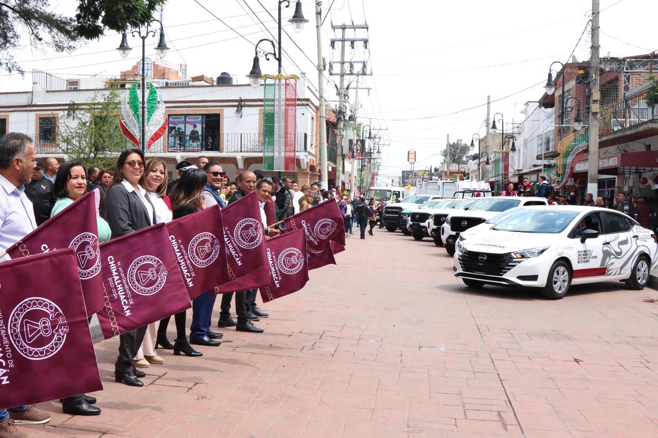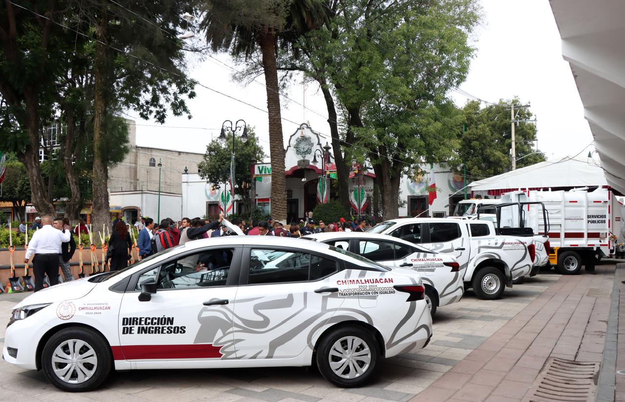 Con la finalidad de mejorar los servicios que ofrece el H. Ayuntamiento de Chimalhuacán en cuanto a la recolección de basura, así como la administración y operatividad de otras direcciones y departamentos como Salud, Seguridad, Obras Públicas, Vía Pública, Mercados, Servicio Militar, Juzgados Cívicos, Ingresos, entre otros, la Presidenta Municipal, Xóchitl Flores Jiménez, entregó nuevo parque vehicular a los titulares de las mismas.