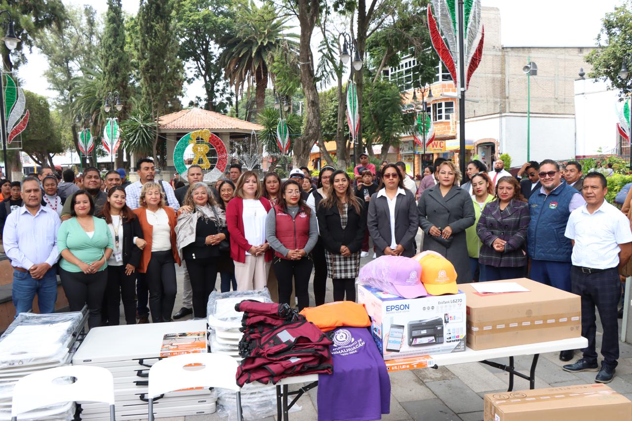 “Hoy nos reunimos para celebrar un paso importante en el fortalecimiento de nuestra administración pública y en la mejora de los servicios que ofrecemos a nuestros chimalhuaquenses. Con gran entusiasmo hacemos la entrega de nuevos vehículos a áreas clave. Estos vehículos fortalecerán la administración general de nuestros servicios y optimizarán la operatividad y coordinación de distintas áreas”, dijo la Presidenta de Chimalhuacán en la entrega de parque vehicular, realizada en la Plaza Ignacio Zaragoza, a un costado del Palacio Municipal.