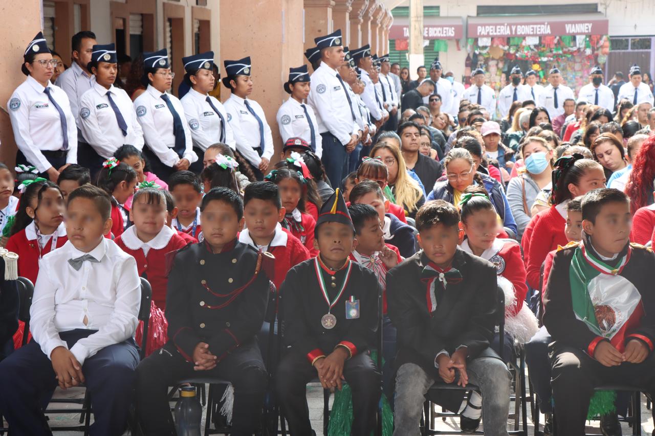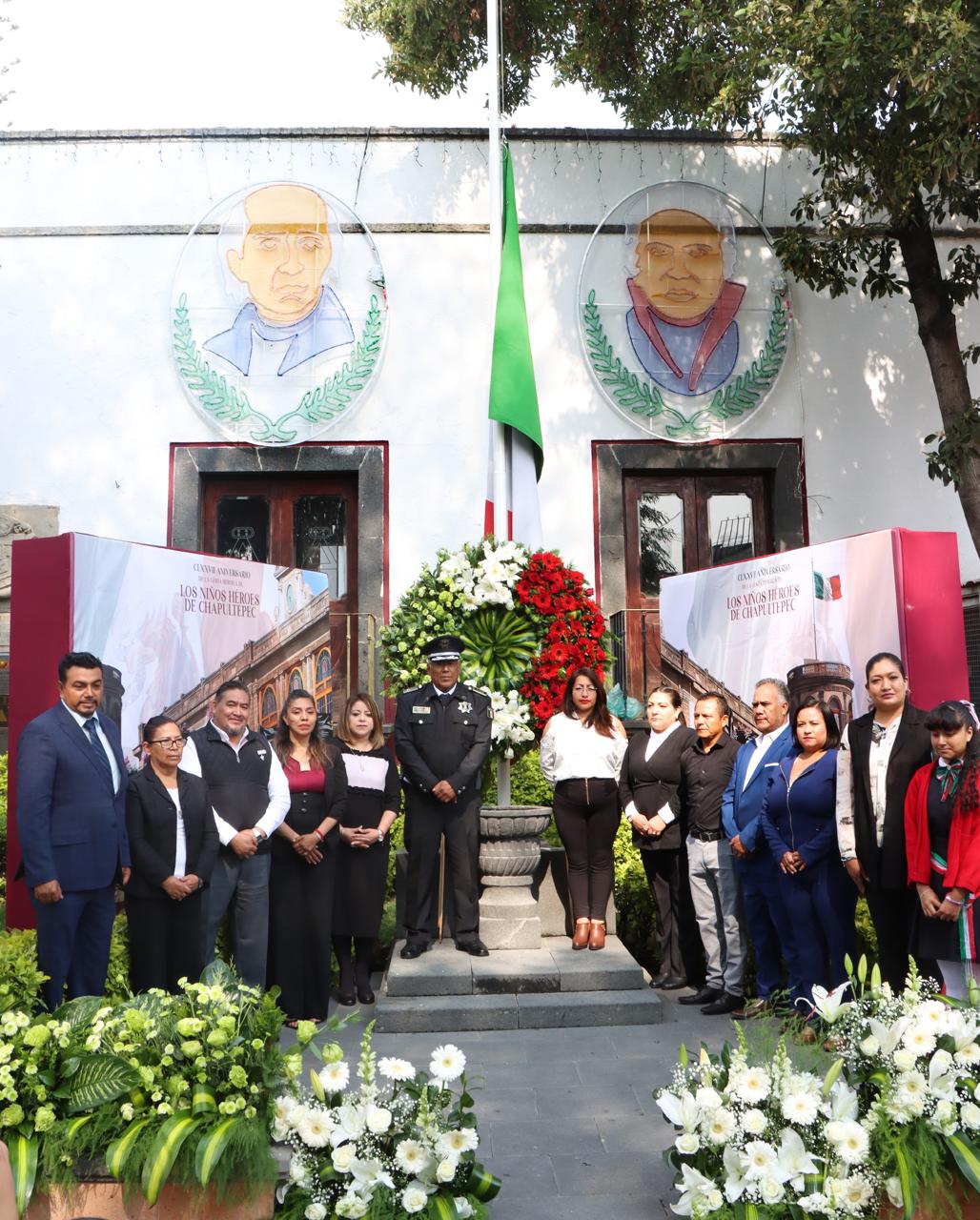 La ceremonia por la Gesta Heroica de Los Niños Héroes incluyó la entonación del Himno Nacional Mexicano y honores al lábaro patrio a cargo de la Banda de Guerra de la Dirección General de Seguridad Ciudadana, la escolta de la Policía Municipal y de la Banda Sinfónica “Chimalli Yolotl”. Asimismo, la alumna Guadalupe Medina, de la Primaria “Niños Héroes de Chapultepec”, presentó una reseña histórica de la Batalla de Chapultepec, mientras que la titular de la Dirección de Educación, maestra María del Pilar Piña Trejo, destacó la importancia de la unidad, el compromiso y el amor por la patria.