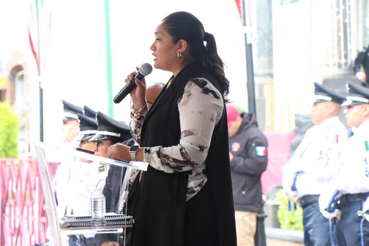 En compañía de miembros del H. Cuerpo Edilicio de Chimalhuacán y en representación de la Presidenta Municipal, Xóchitl Flores Jiménez, la Secretaria del Ayuntamiento, Patricia Josefina Jiménez Hernández, encabezó la ceremonia por la conmemoración del CLXXVII Aniversario de la Gesta Heroica de los Niños Héroes del Castillo de Chapultepec.