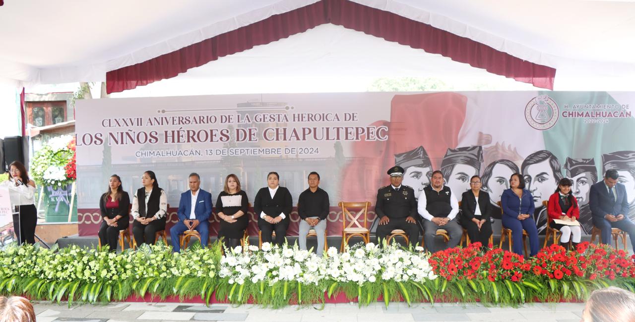 En la Plaza Zaragoza de la Cabecera Municipal, el Gobierno de Chimalhuacán rindió homenaje a los Niños Héroes, quienes dieron su vida en la Batalla de Chapultepec aquel 13 de septiembre de 1847, en la que –junto al Ejército Mexicano comandado en dicho lugar por el general Nicolás Bravo– pelearon en contra del ejército invasor de los Estados Unidos.