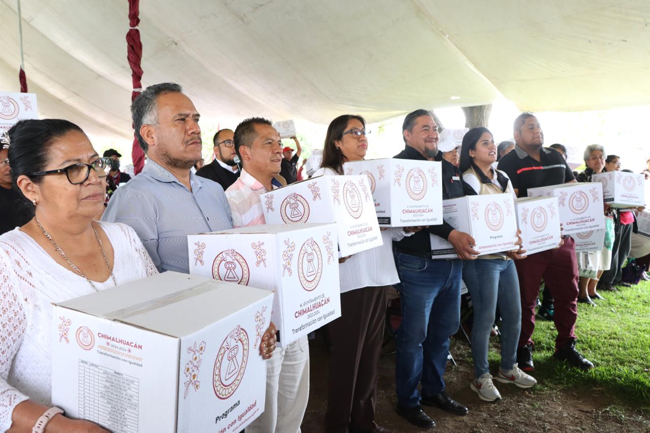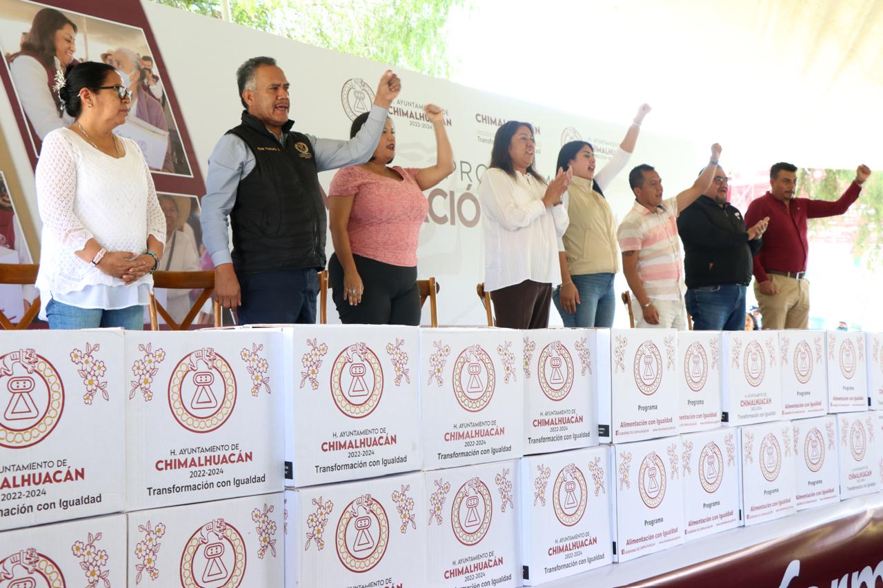 Con la finalidad de promover el bienestar de las familias chimalhuaquenses y mejorar su alimentación, la Presidenta de Chimalhuacán, Xóchitl Flores Jiménez, en compañía de integrantes del H. Cuerpo Edilicio, encabezó el inicio de la tercera entrega anual del programa municipal “Alimentación con Igualdad” 2024, a través del cual 12 mil familias vulnerables reciben de forma trimestral una canasta alimentaria con productos de primera necesidad.