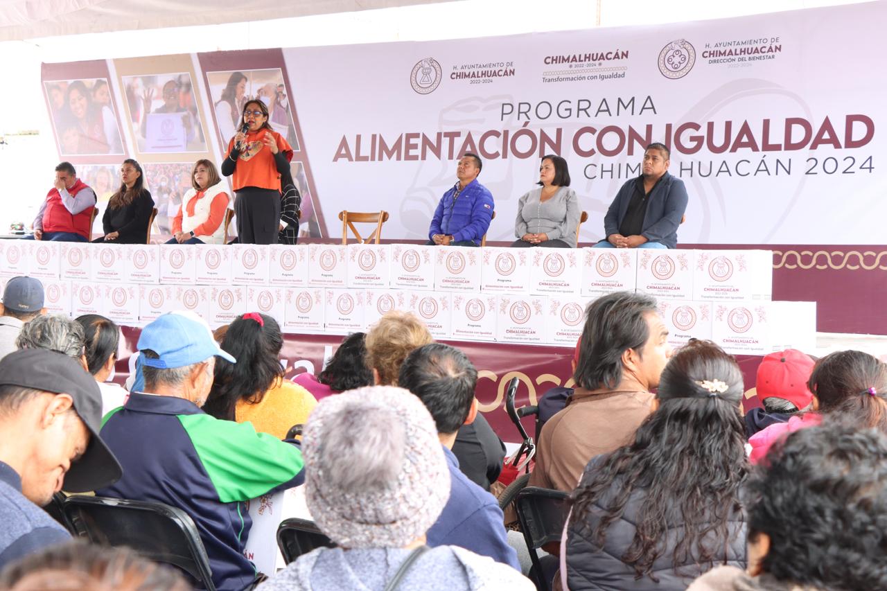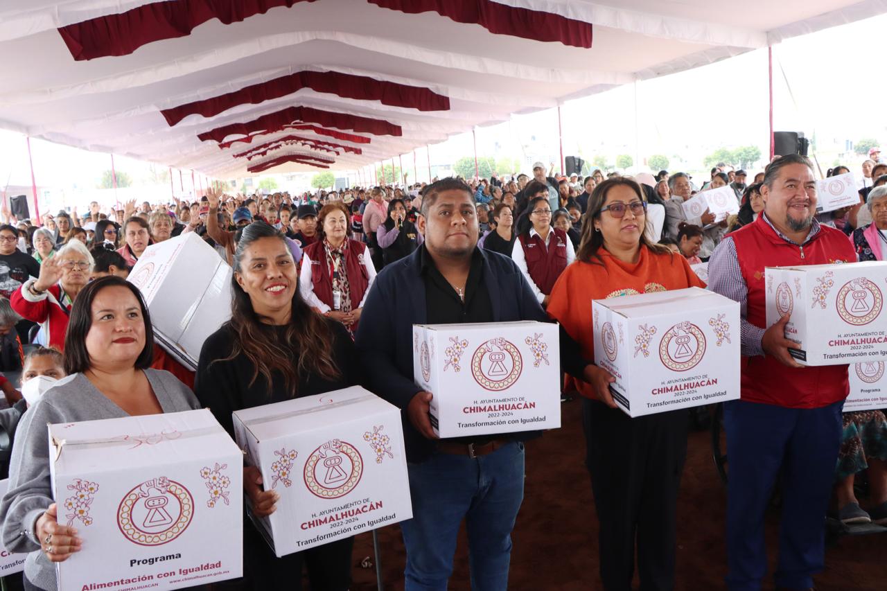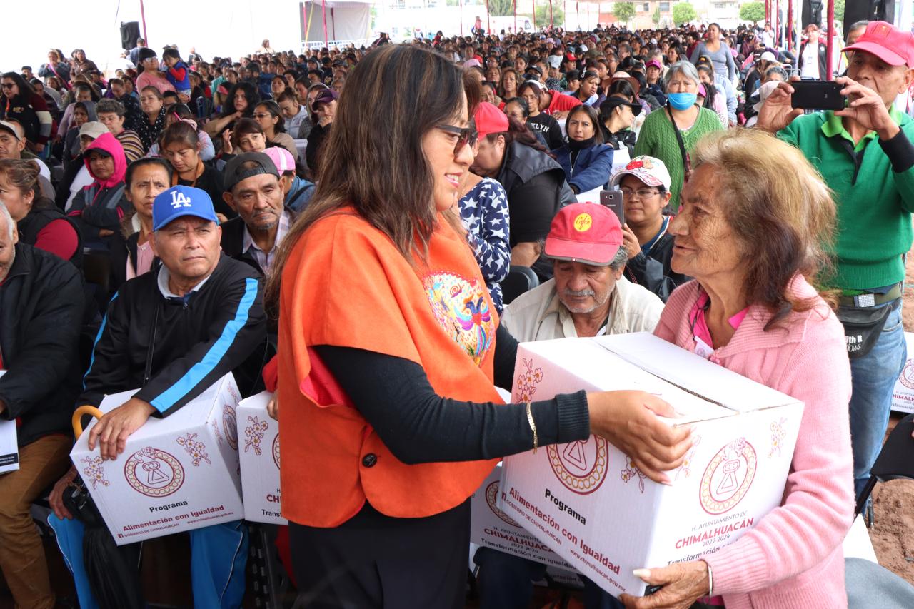 Con el objetivo de favorecer el acceso a los alimentos a las familias de Chimalhuacán que se encuentren en condición de vulnerabilidad o no tienen acceso a una alimentación nutritiva y de calidad, el Gobierno de Chimalhuacán que encabeza la Presidenta Municipal Xóchitl Flores Jiménez, este día entregaron más de 2 mil canastas alimentarias del Programa “Alimentación con Igualdad” en el Deportivo Herreros.