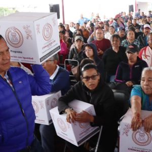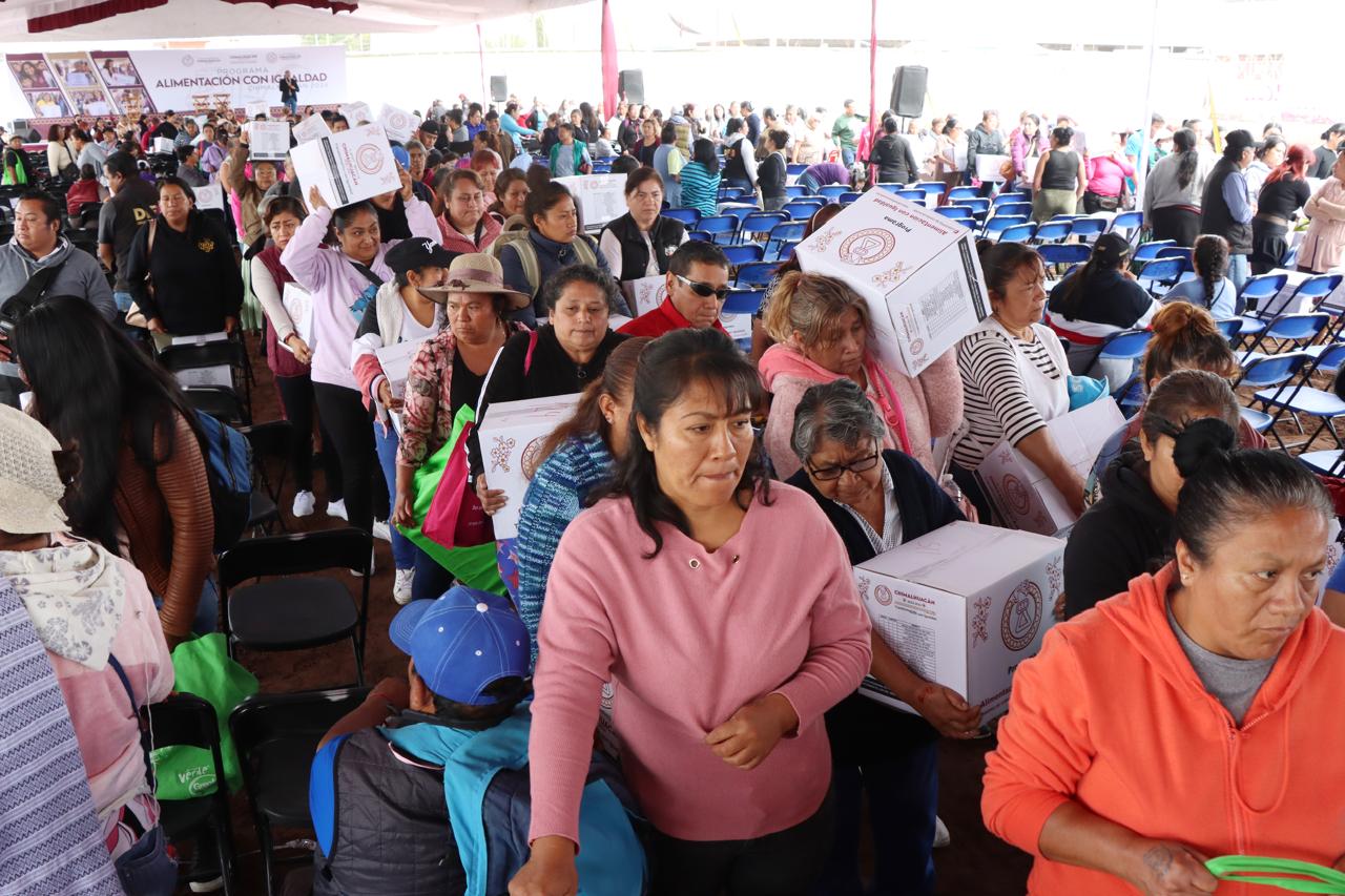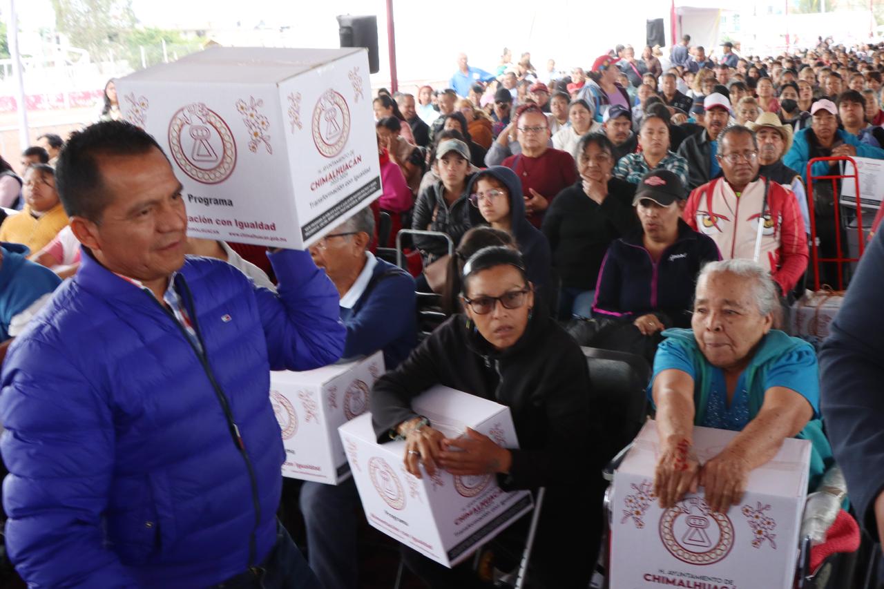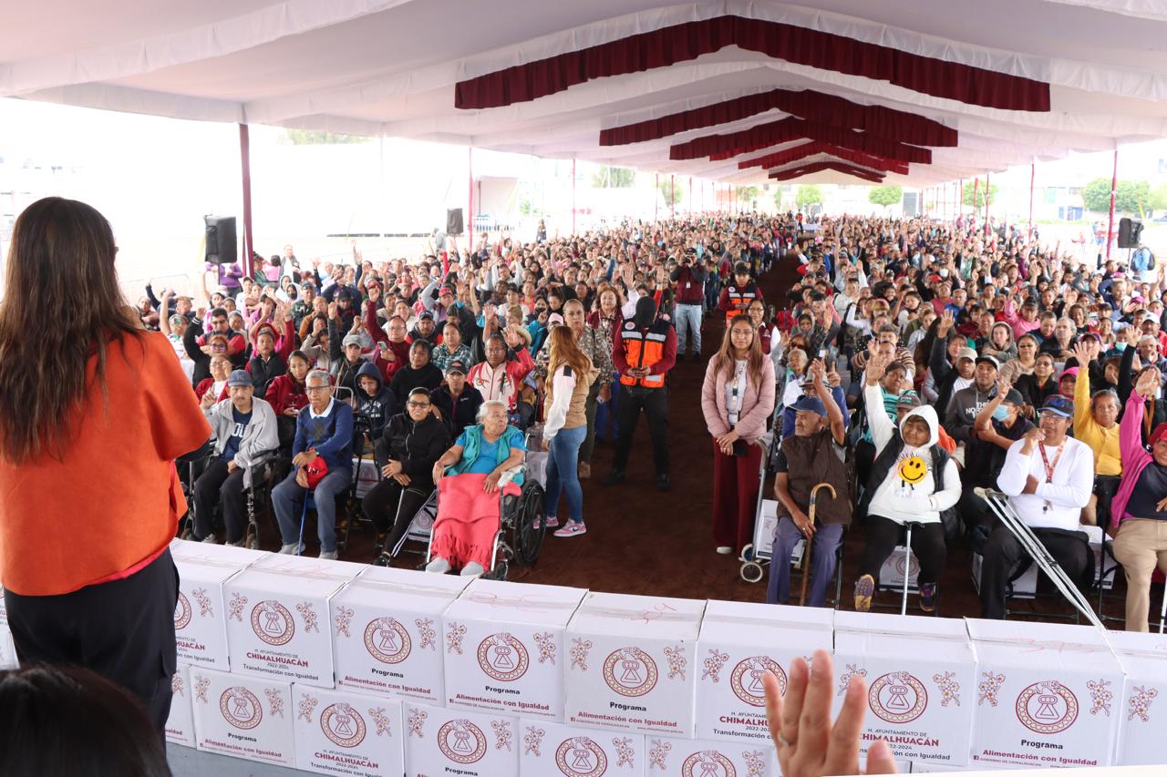 Con el objetivo de favorecer el acceso a los alimentos a las familias de Chimalhuacán que se encuentren en condición de vulnerabilidad o no tienen acceso a una alimentación nutritiva y de calidad, el Gobierno de Chimalhuacán que encabeza la Presidenta Municipal Xóchitl Flores Jiménez, este día entregaron más de 2 mil canastas alimentarias del Programa “Alimentación con Igualdad” en el Deportivo Herreros.