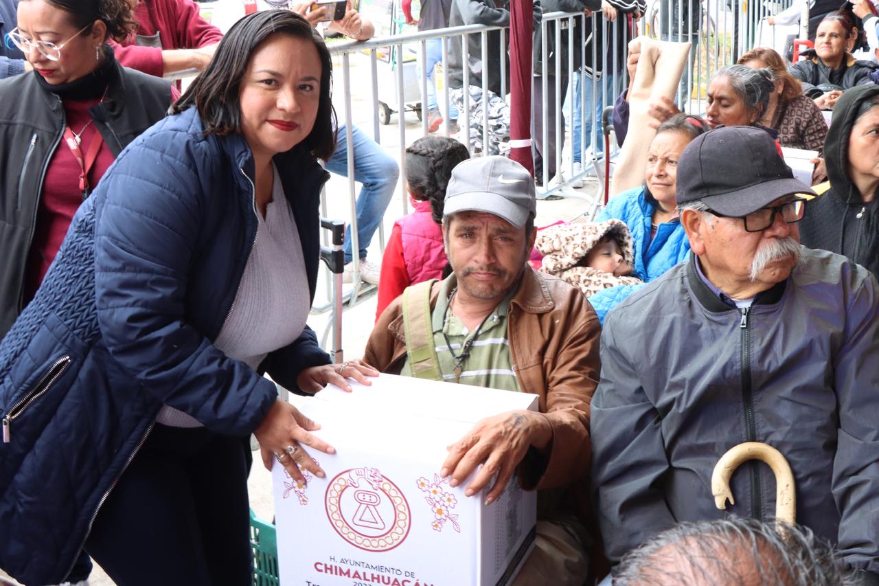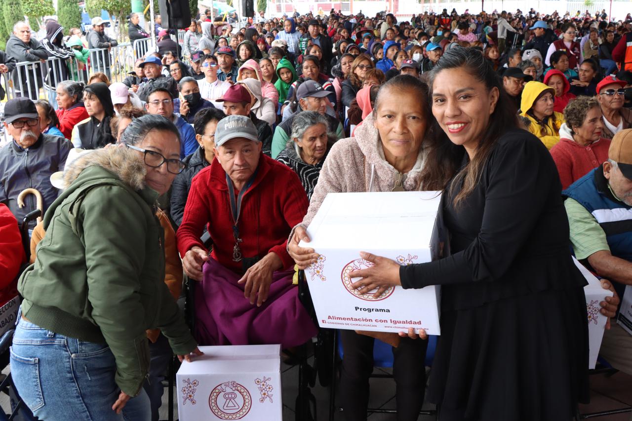 Al concluir la tercera entrega anual del programa municipal “Alimentación con igualdad”, la Presidenta de Chimalhuacán, Xóchitl Flores Jiménez, afirmó que se seguirá trabajando en favor de la población que más lo necesita. En ese sentido, indicó que el Cabildo entrante trabajará para seguir realizando acciones que mejoren la calidad de vida de los chimalhuaquenses.