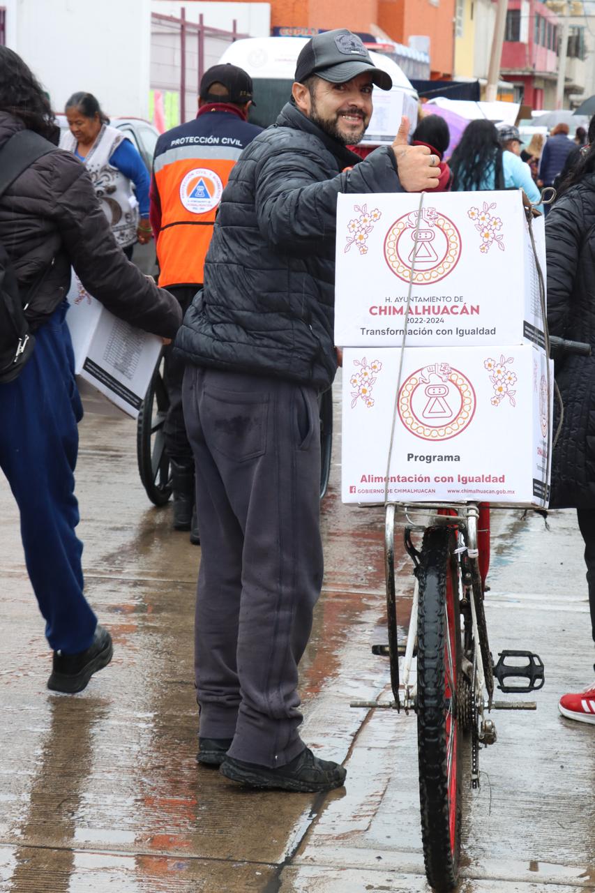 Carolina López Pérez, vecina del Barrio Plateros, beneficiaria del programa municipal “Alimentación con Igualdad”, aseguró que la canasta es un apoyo a la economía familiar, sobre todo para las mujeres que cuentan con menores de edad, y confió en que esta ayuda siga llegando a las familias de Chimalhuacán.