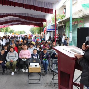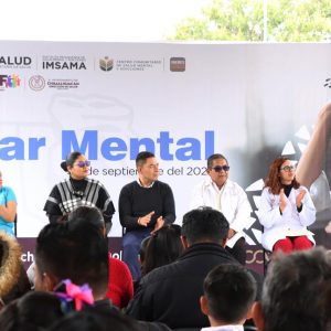 Frente a las instalaciones del Centro Integral de Salud Mental, ubicado en barrio Transportistas, y en representación de la Presidenta de Chimalhuacán, Xóchitl Flores Jiménez, la Séptima Regidora, Guadalupe Isabel Reynoso Flores, expresó que la Feria tiene el propósito de promover la salud mental y erradicar el estigma que existe sobre la conducta suicida. En la Feria se promueve el autocuidado mediante estrategias lúdicas con las cuales se pueden detectar casos en los que se vulnera la salud mental de los estudiantes de todos los niveles educativos, así como orientarlos en la búsqueda de apoyo profesional, agregó la Séptima Regidora.