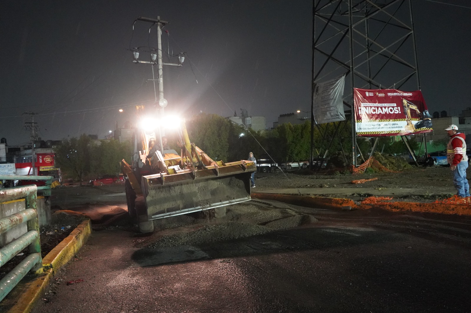 En estos días se trabajará en la instalación de un barandal metálico fabricado con perfiles PTR, y se está considerando la incorporación de una protección adicional para conformar un cajón, además de dos rampas con cimentación corrida a base de zapatas y contratrabes de concreto R-250.