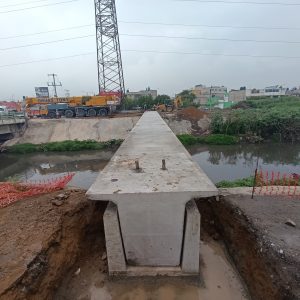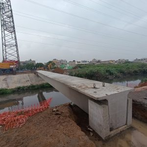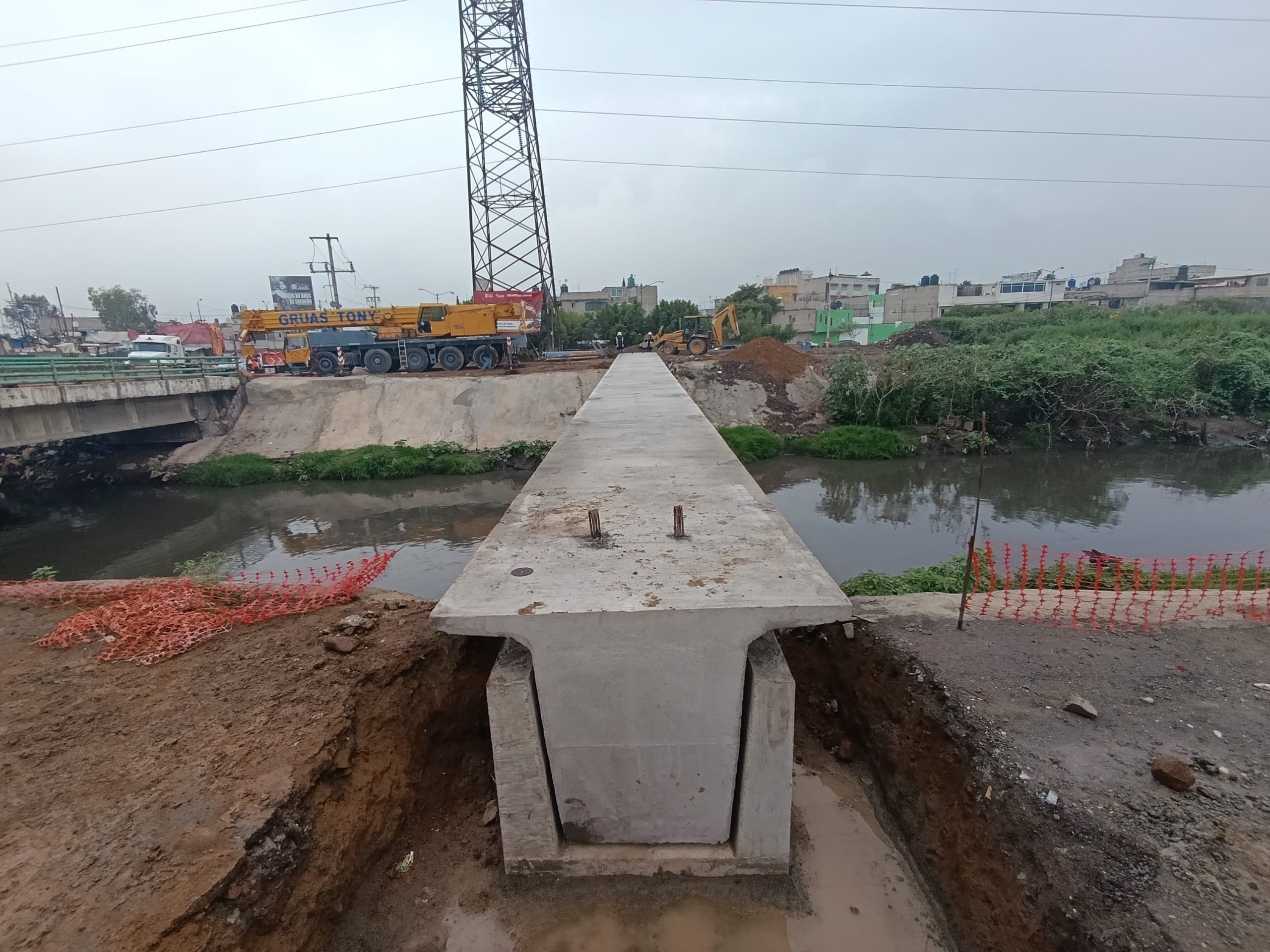 La estructura de concreto colocada sobre el Canal Río de la Compañía fue instalada con el apoyo de personal de las direcciones municipales de Tránsito y Protección Civil, así como de dos grúas especializadas. La pieza, de más de 40 toneladas, se constituye en el elemento fundamental de este proyecto, que beneficiará a miles de personas que diariamente transitan por esta zona.