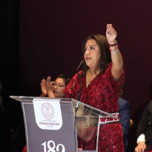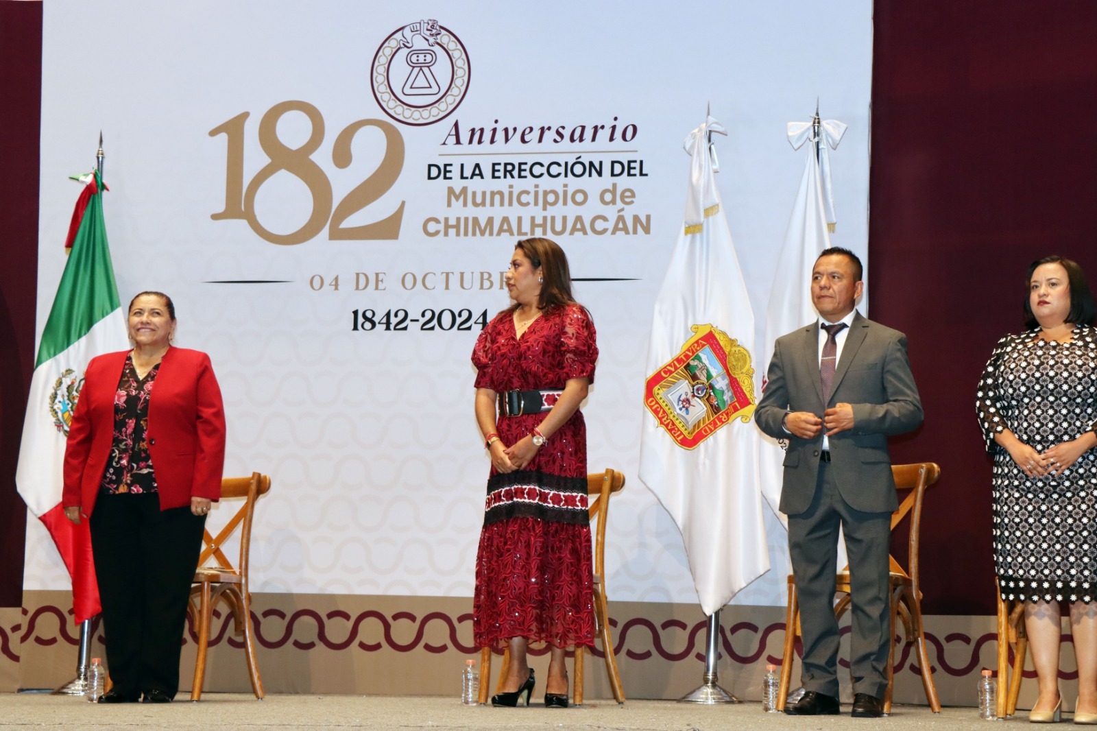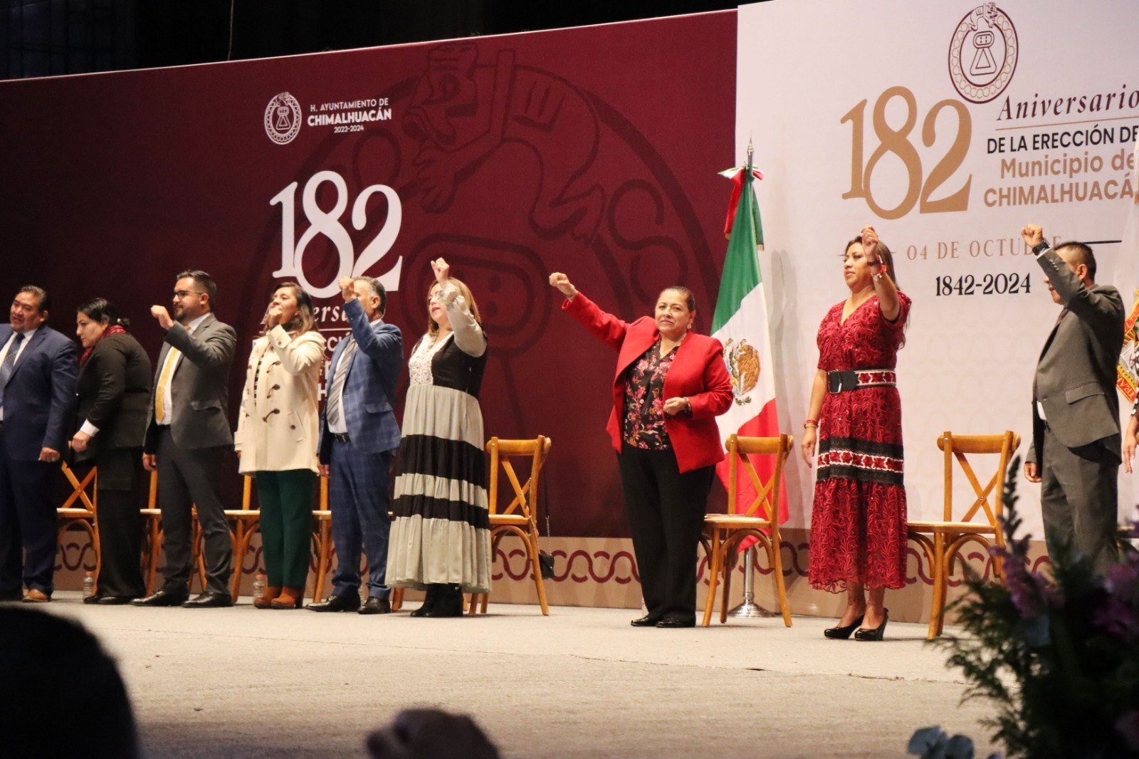 “Hoy es tiempo de mujeres y que mejor que celebrar un año más de la fundación de Chimalhuacán con un nuevo gobierno que fortalece la democracia, libertad, dignidad, derechos, justicia y la felicidad de todas y todos los mexicanos”, afirmó la Presidenta Municipal, Xóchitl Flores Jiménez, al presidir la ceremonia conmemorativa del 182 Aniversario de la Erección del municipio de Chimalhuacán.
