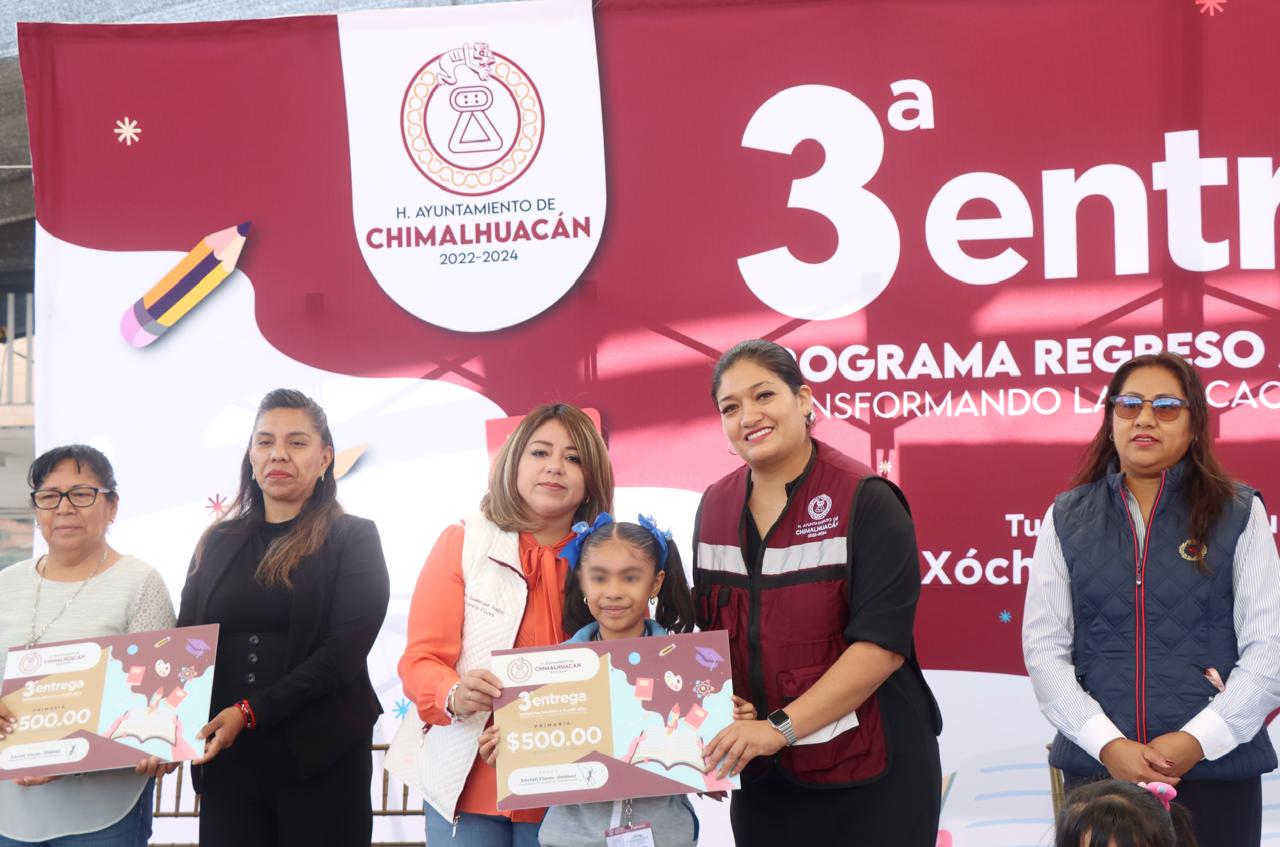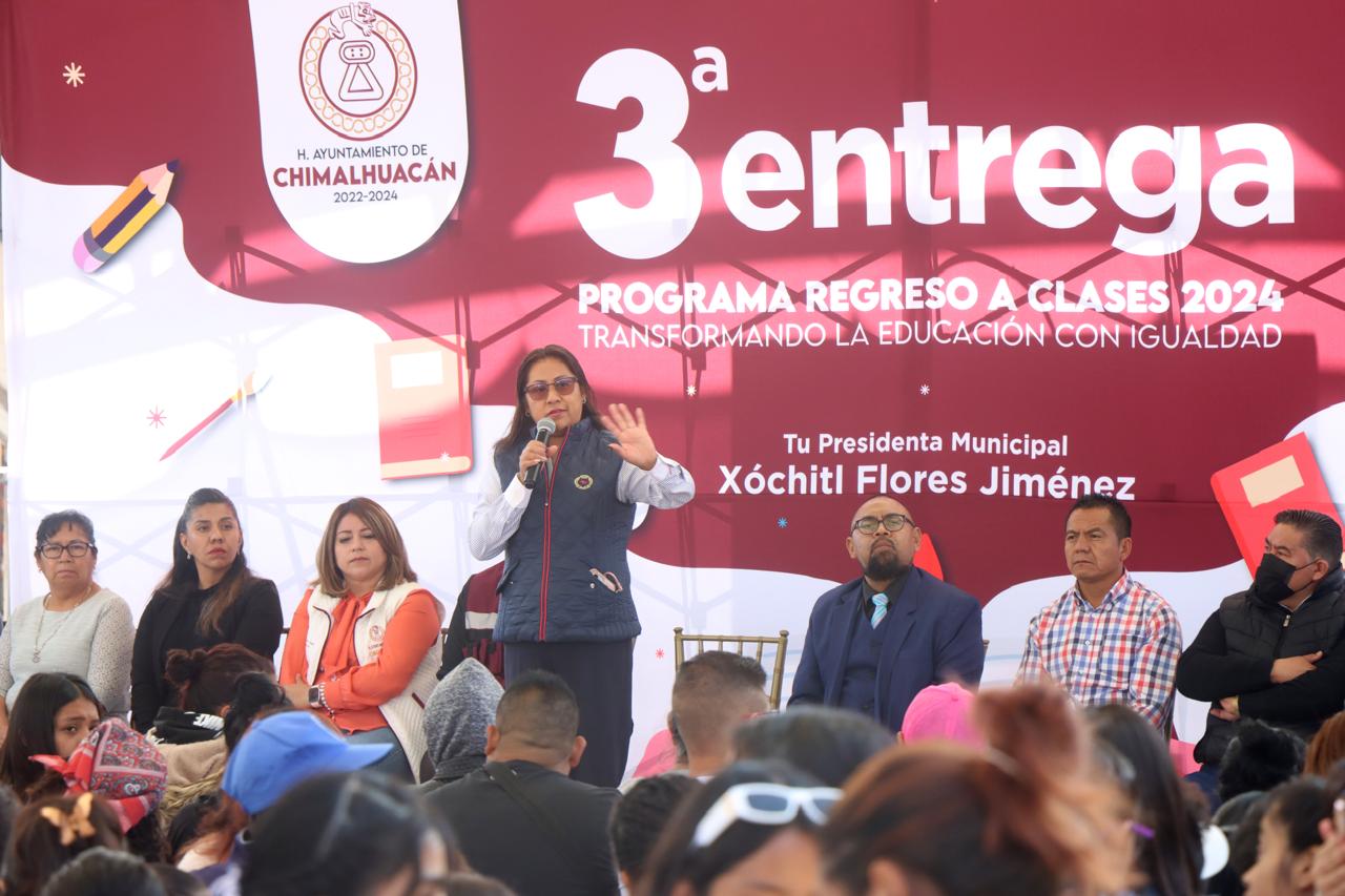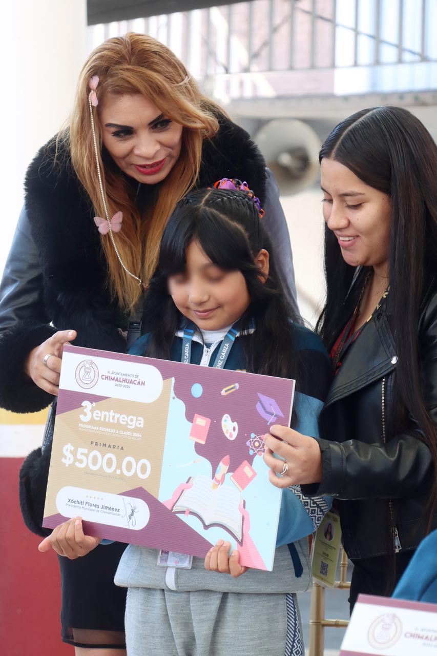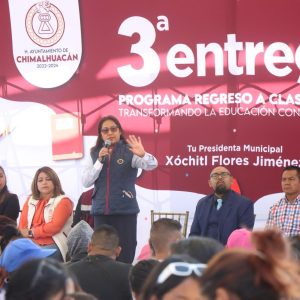En cumplimiento de su compromiso de mejorar las condiciones en las que estudian y se preparan para su futuro los niños y adolescentes del territorio, la Presidenta de Chimalhuacán, Xóchitl Flores Jiménez, entregó a alumnos y padres de familia de la Escuela Primaria “Moisés Sáenz Garza” el apoyo económico del programa municipal “Regreso a Clases, Transformando la Educación con Igualdad”, el cual creó a principios de su administración en 2022.