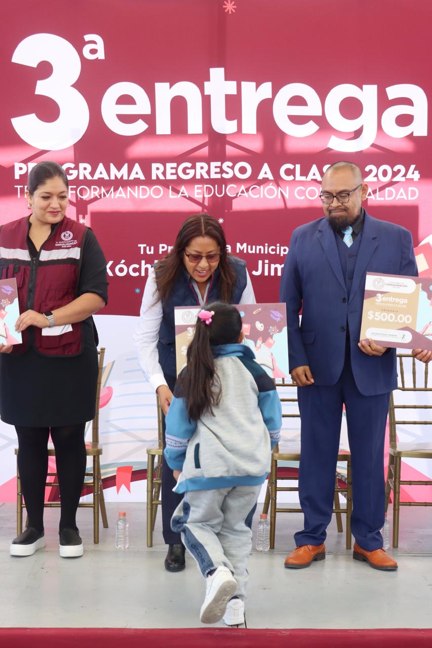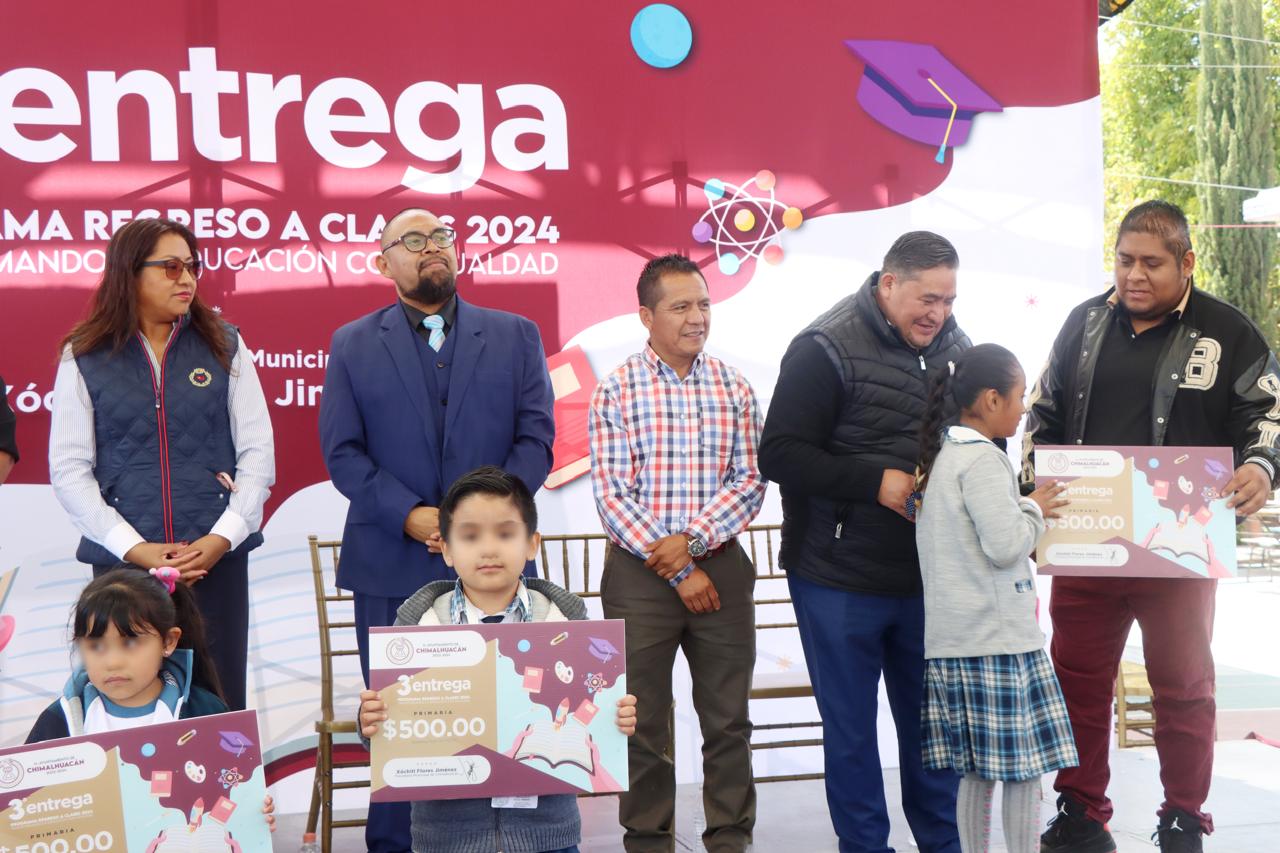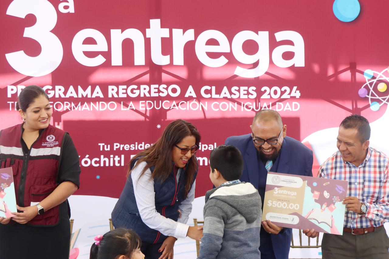 En cumplimiento de su compromiso de mejorar las condiciones en las que estudian y se preparan para su futuro los niños y adolescentes del territorio, la Presidenta de Chimalhuacán, Xóchitl Flores Jiménez, entregó a alumnos y padres de familia de la Escuela Primaria “Moisés Sáenz Garza” el apoyo económico del programa municipal “Regreso a Clases, Transformando la Educación con Igualdad”, el cual creó a principios de su administración en 2022.