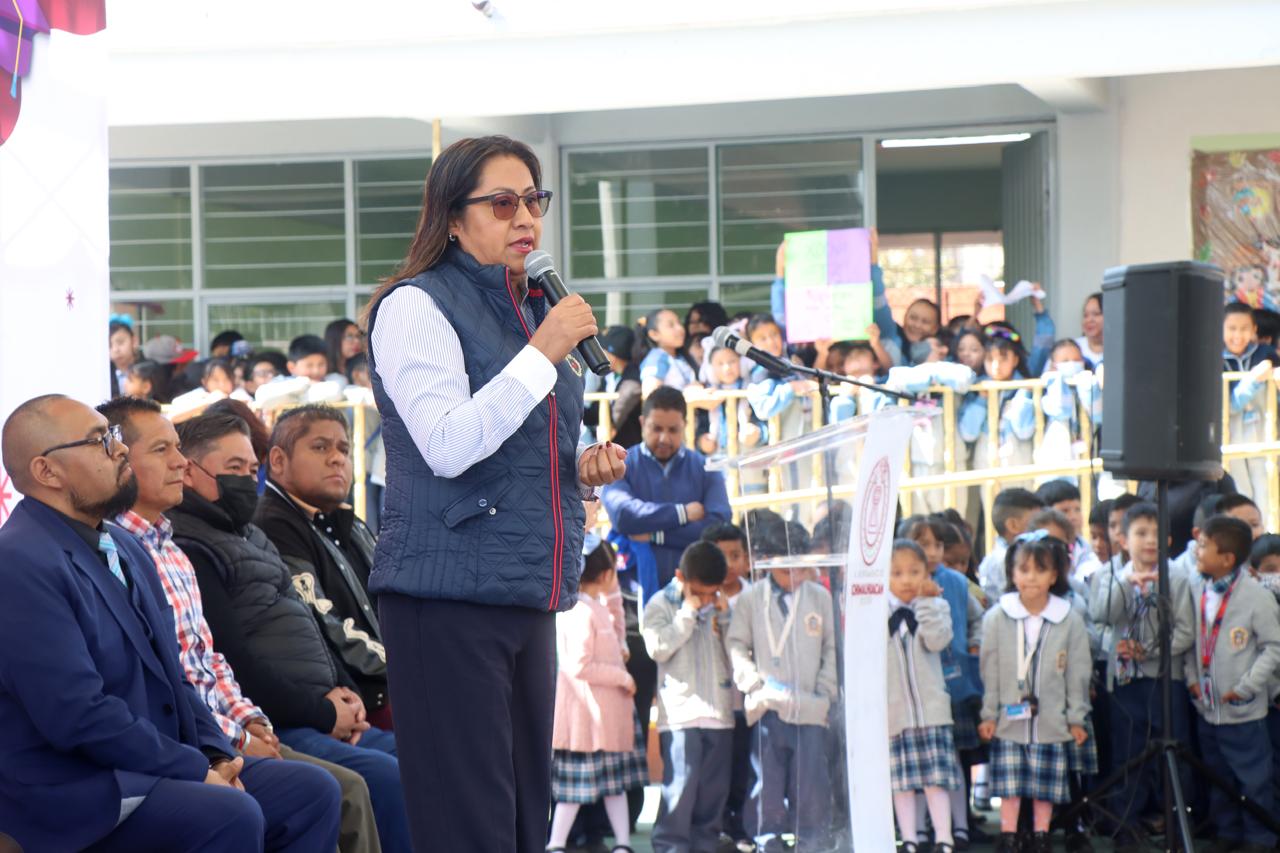 María del Pilar Piña Trejo, titular de la Dirección de Educación del H. Ayuntamiento, expresó ante la comunidad estudiantil que el programa municipal “Regreso a Clases, Transformando la Educación con Igualdad” es único en el Estado de México, ya que en otros municipios no existe, es exclusivo de Chimalhuacán.