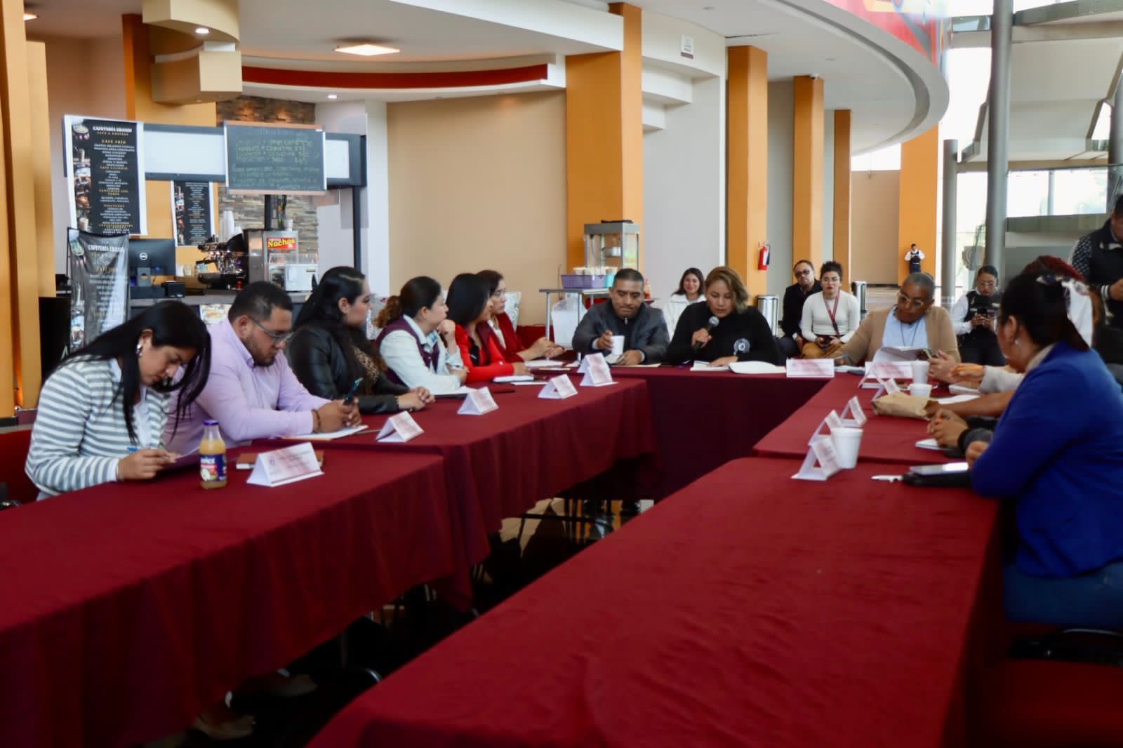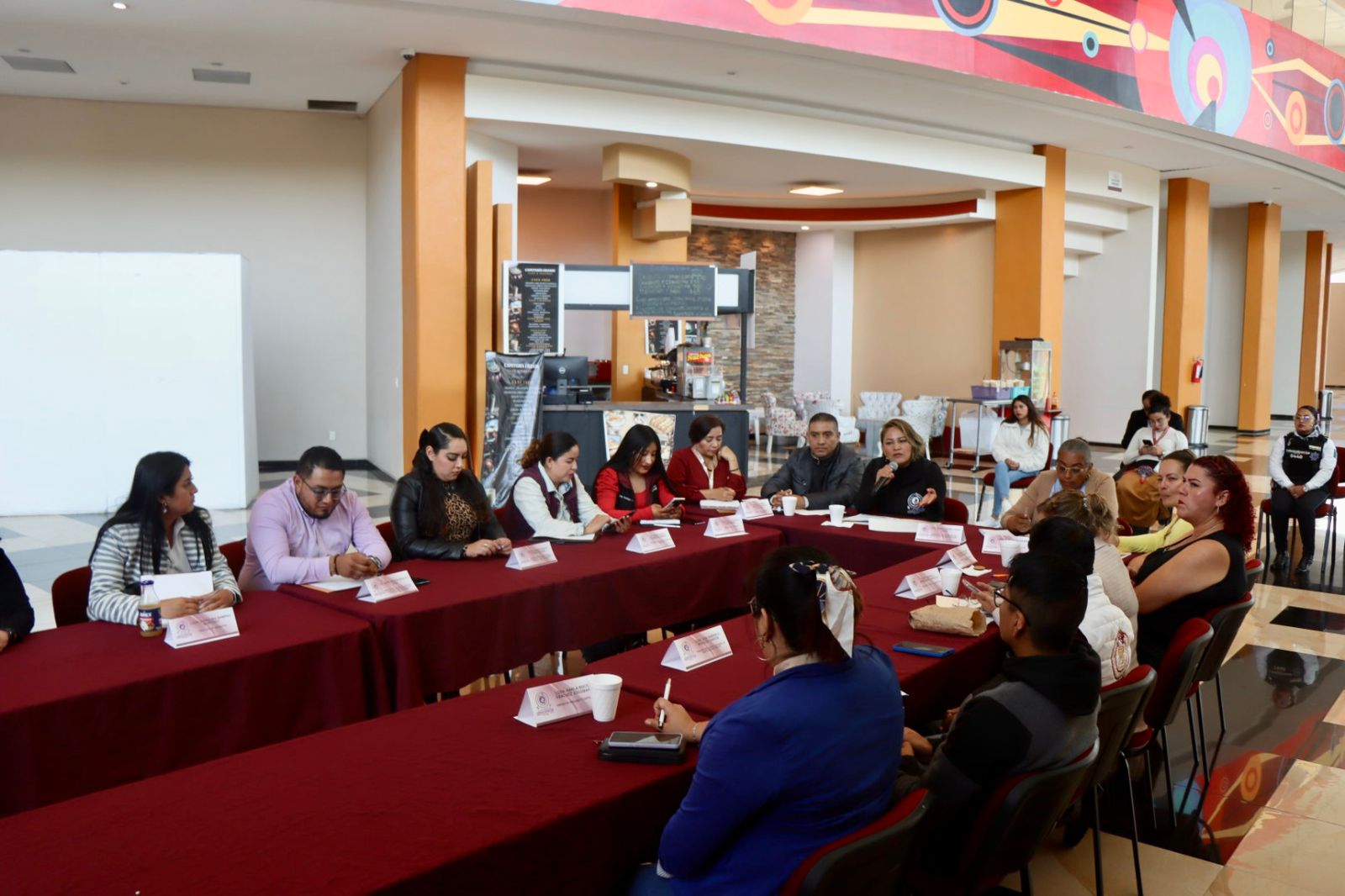 La sesión, realizada en el lobby del Teatro Acomiztli Nezahualcóyotl, fue dirigida por la titular de la Dirección de la Mujer, María Magaly Páez Coria, quien lideró la discusión de los puntos clave para fortalecer las estrategias de protección y atención a las mujeres del municipio, concientizar y movilizar a la sociedad para erradicar la violencia en todas sus formas.