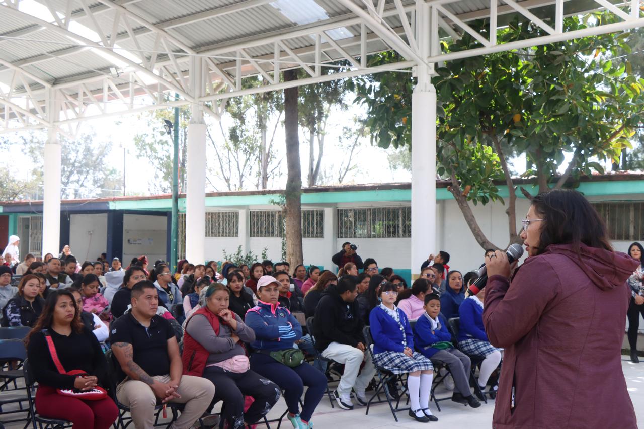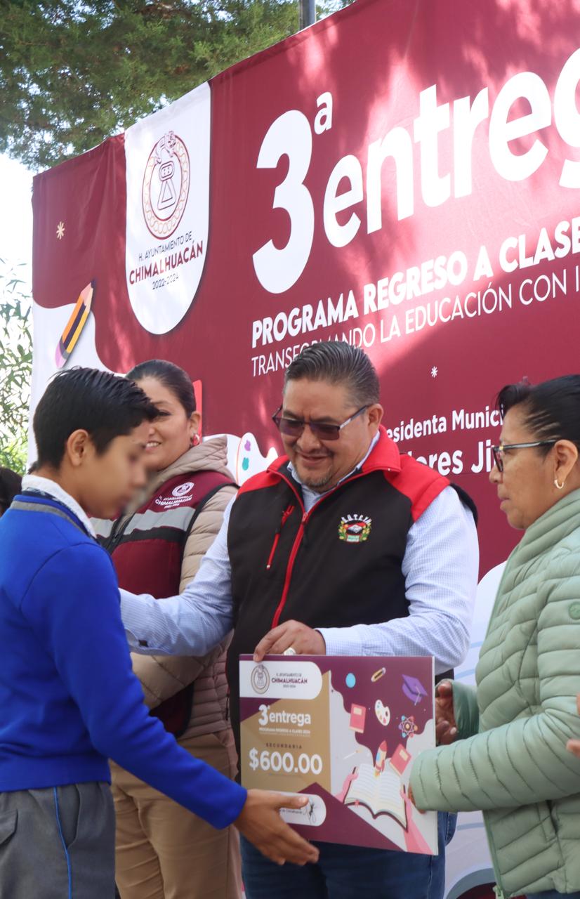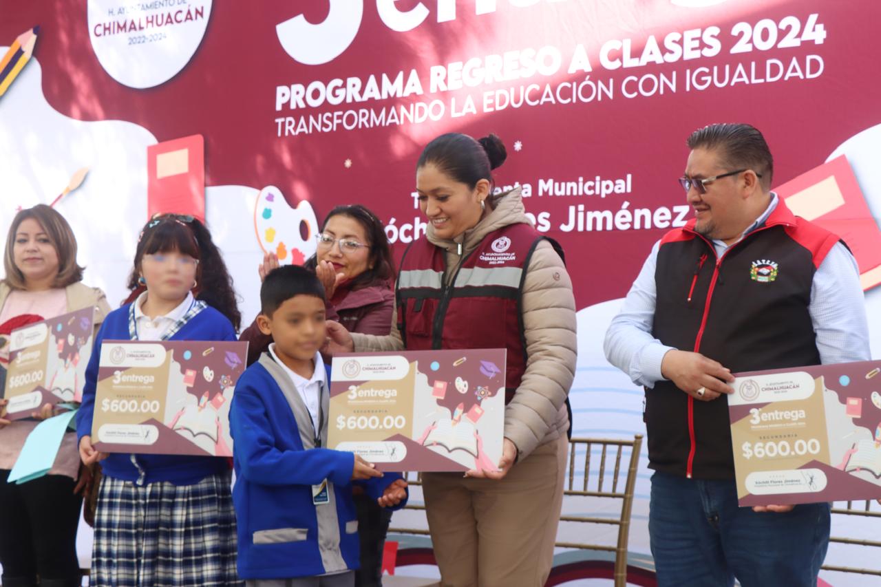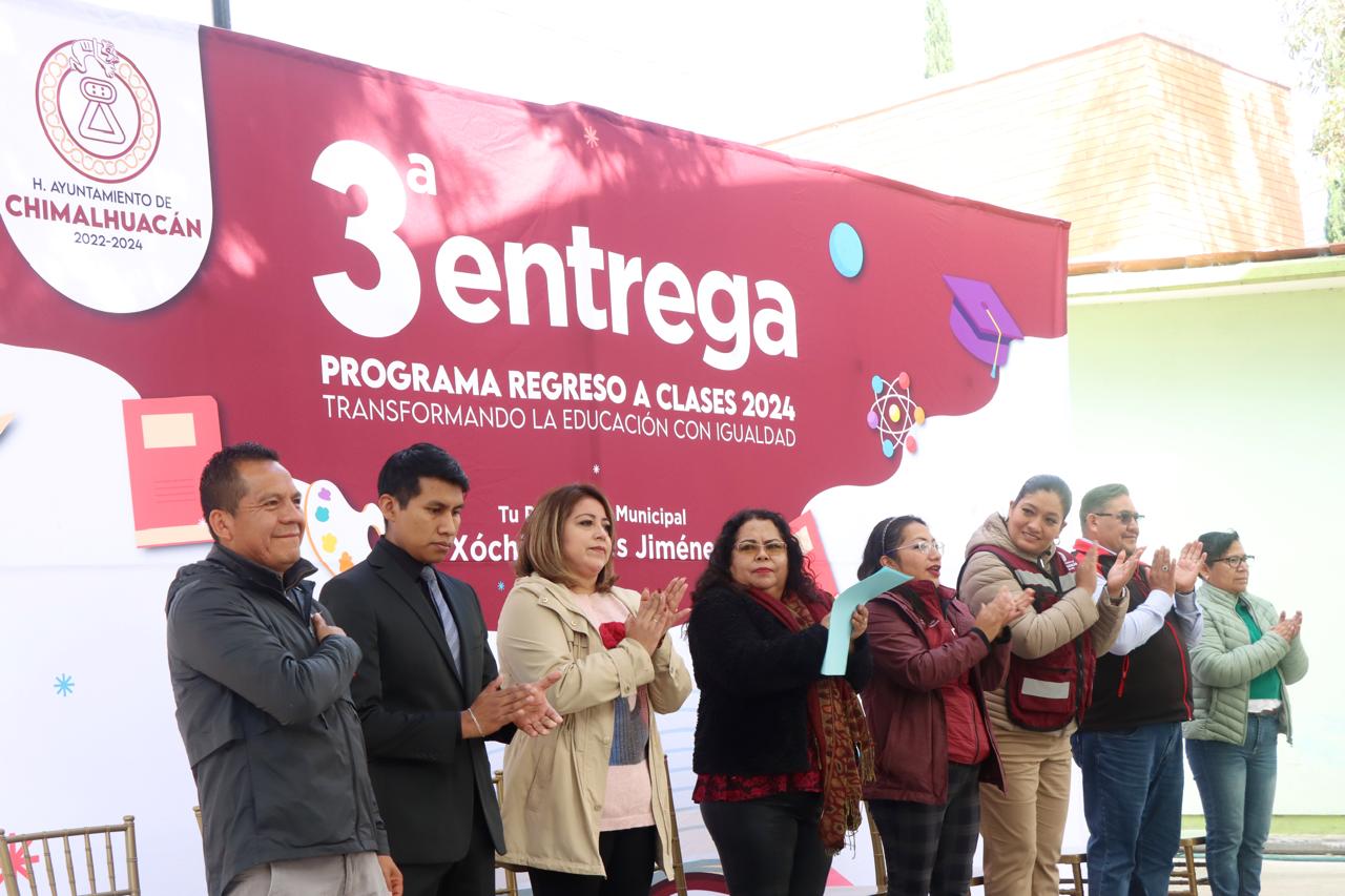 A nombre de la Presidenta de Chimalhuacán, la Secretaria del Ayuntamiento expresó a los padres y tutores que en más de 490 escuelas se está entregando por tercer año consecutivo el programa municipal “Transformando la Educación con Igualdad”, con el cual se beneficia a todos los estudiantes de educación básica del municipio. “Como decía el expresidente de la República, Andrés Manuel López Obrador, bien administrado el recurso alcanza porque alcanza”.