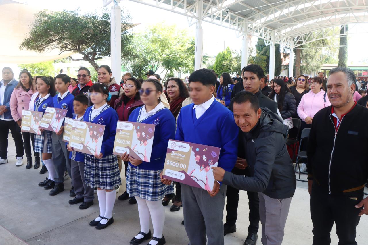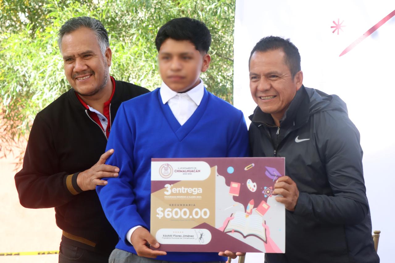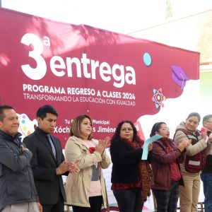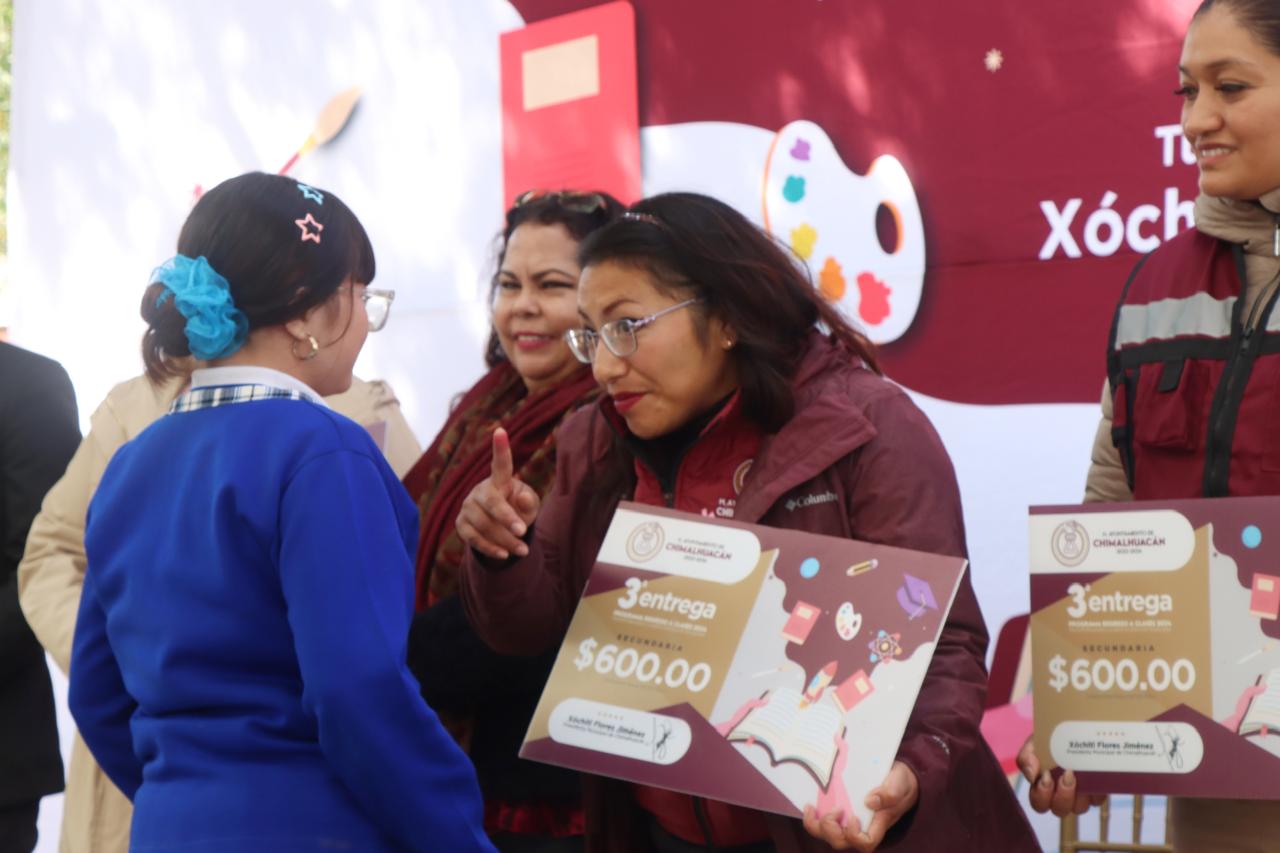 Y resaltó que a la Presidenta Xóchitl Flores ya la llaman “la Presidenta de la Educación”, por su especial interés y dedicación en dicho rubro, pues en su administración, además del programa de Regreso a Clases, también ha construido mucha obra pública en las escuelas, tales como arcotechos, módulos sanitarios, aulas, bardas perimetrales, etc. “Apoyen a sus hijos para que, en el futuro, sean buenos profesionistas comprometidos, que es lo que necesita Chimalhuacán”, exhortó a los padres y madres de familia la Secretaria.