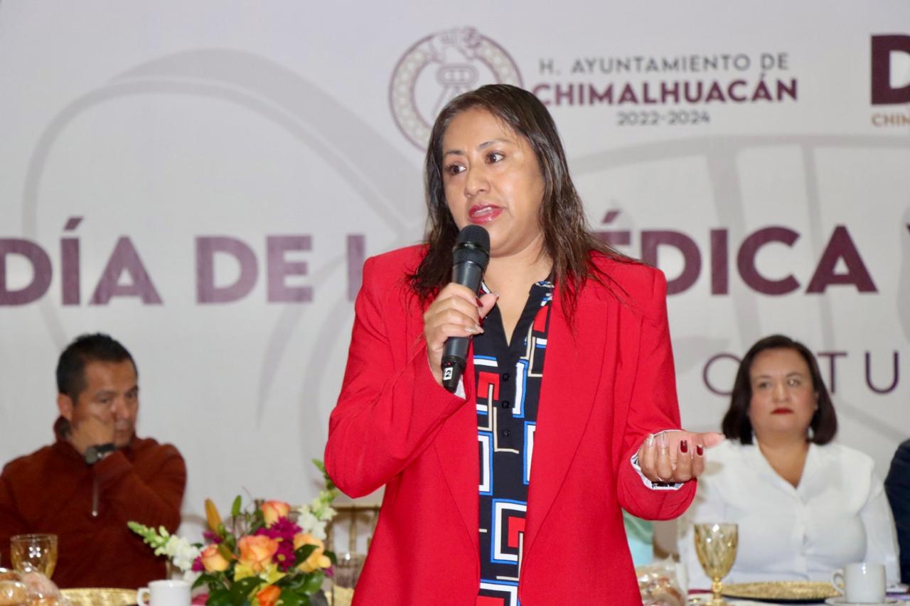 En el acto conmemorativo del Día de la Médica y el Médico, la Presidenta de Chimalhuacán, Xóchitl Flores Jiménez, reconoció la importante labor de los médicos en el municipio y su invaluable participación en el cuidado de la salud de la población: “Es fundamental que nosotros reconozcamos la labor que ustedes realizan en este gobierno municipal”, y destacó que los médicos son los primeros en responder ante emergencias y situaciones delicadas.