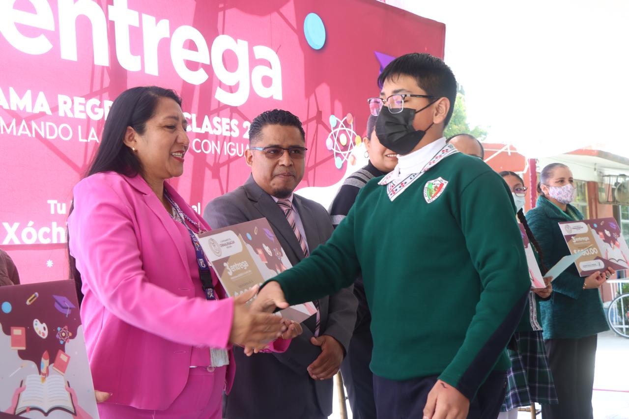Este martes resultaron beneficiados con un apoyo económico de programa referido más de once mil alumnos de preescolar, primaria y secundaria de ambos turnos de barrios y colonias como Tlatel Xochitenco, Trransportistas, Fundidores, Tepalcates y asentamiento humano.