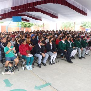 En sintonía con lo anterior, la alumna Karelly Hernández expresó que la educación es el pasaporte de los jóvenes hacia su futuro, porque el mañana pertenece a las personas que se preparan hoy. En ese sentido y en nombre de la comunidad estudiantil, la alumna solicitó a las autoridades municipales la construcción de un salón de usos múltiples, pues en su plantel son cientos los estudiantes que necesitan fomentar su creatividad con trabajos artísticos y culturales.