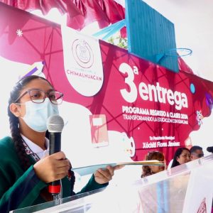 “Desde hace tres años que la Presidenta llegó al gobierno, decidió que una de las banderas de su gobierno sería la educación, por lo cual instituyó el primer programa municipal que atiende a los alumnos de educación básica en el municipio. Este programa no proviene del gobierno federal, ni del gobierno estatal, es 100% municipal, pues decidió crearlo el actual Gobierno de Chimalhuacán, encabezado por la presidenta Xóchitl Flores”, informó la también maestra María del Pilar Piña.