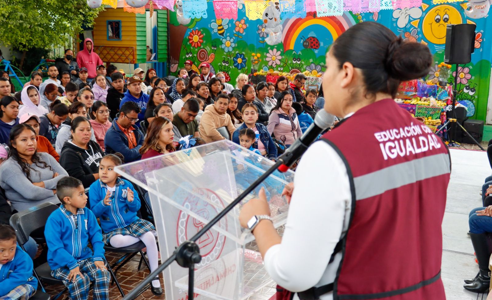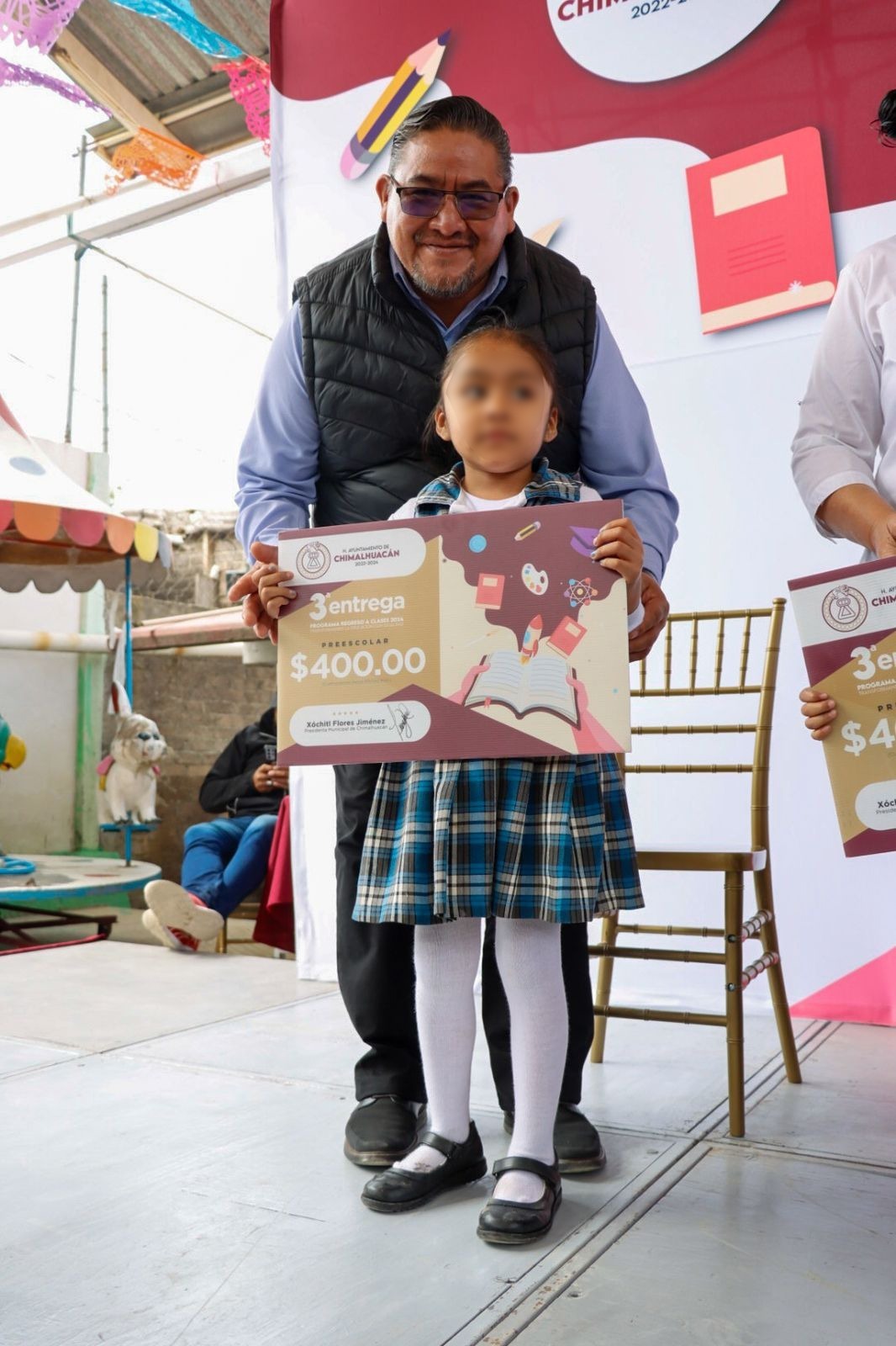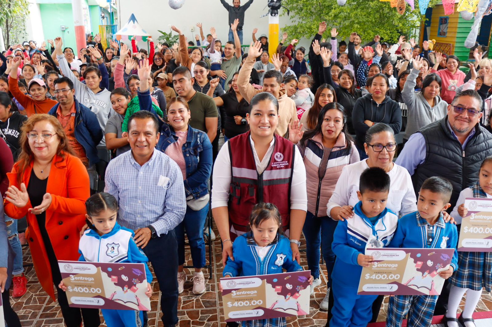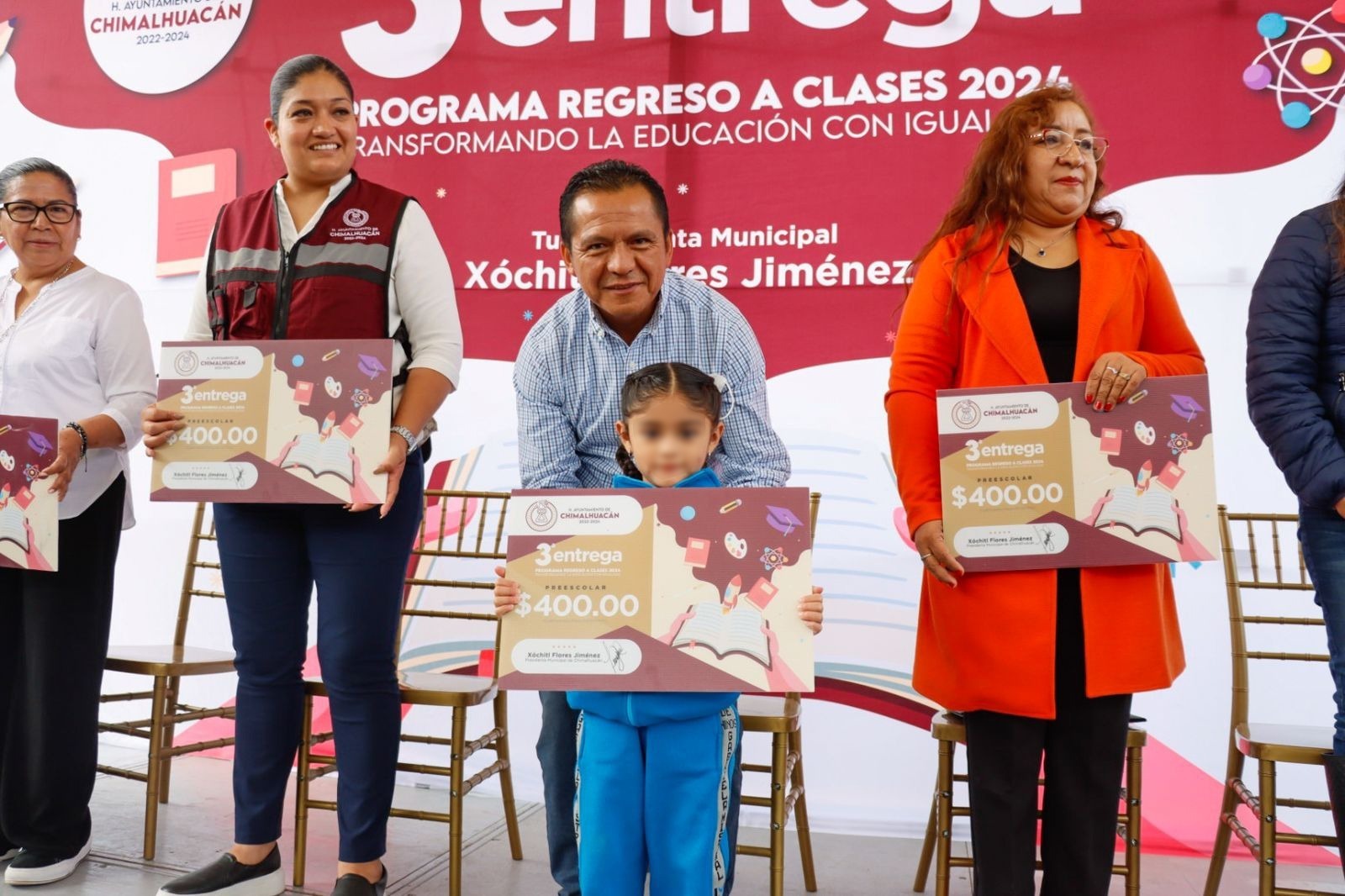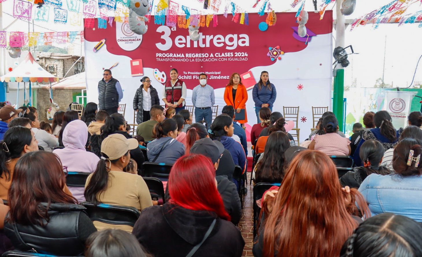 El gobierno de Chimalhuacán, encabezado por la Presidenta Xóchitl Flores Jiménez, llevó a cabo la clausura del programa “Regreso a Clases, Transformando la Educación con Igualdad 2024” en el preescolar “Gabriela Mistral” de Ejidos Santa María, donde se entregó el apoyo económico a 223 niños de ambos turnos.