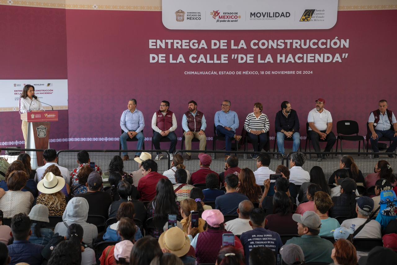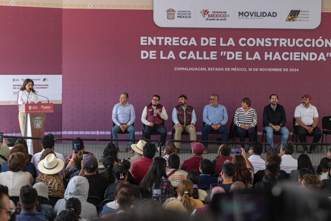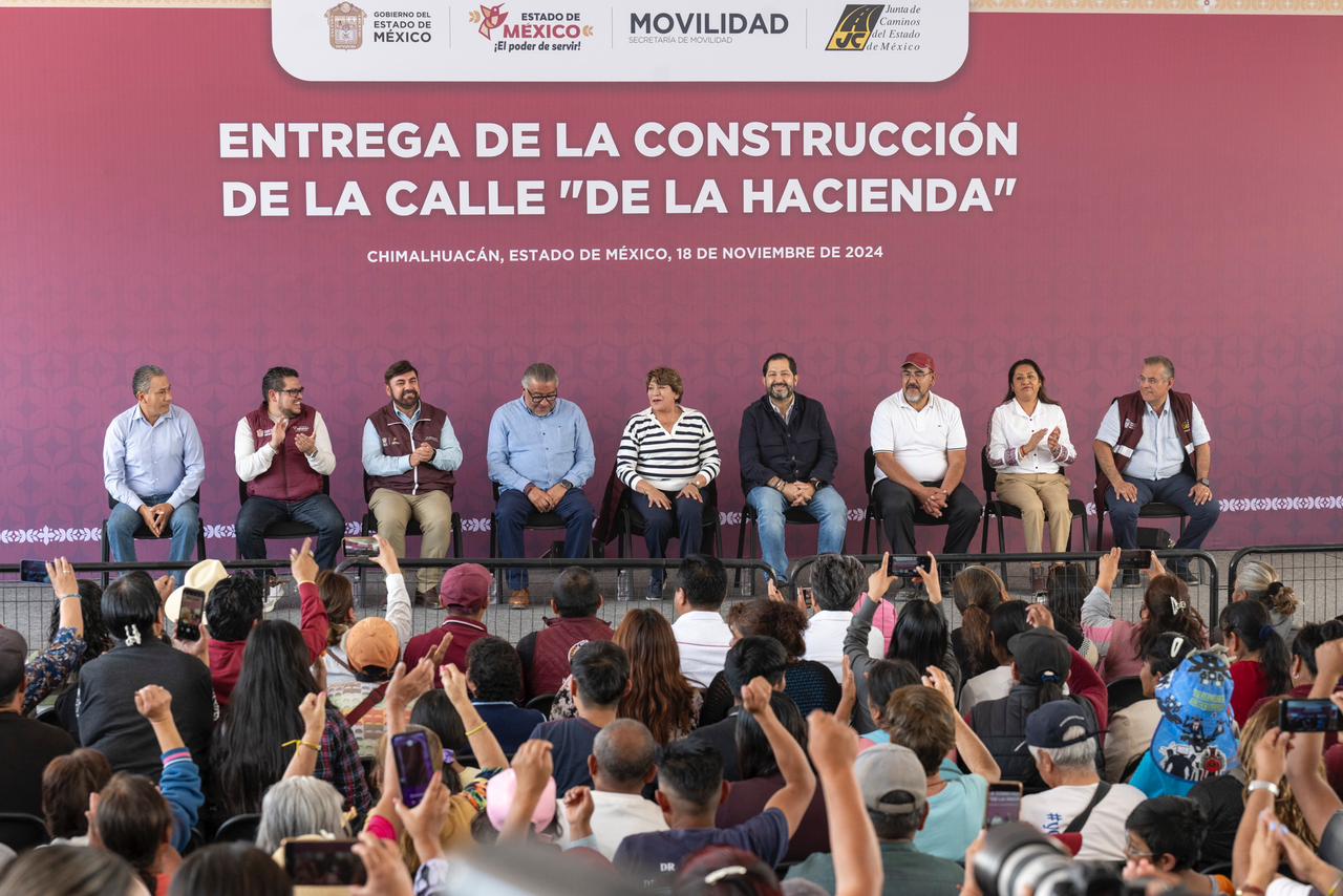 La Gobernadora del Estado de México, Delfina Gómez Álvarez, acompañada por la Presidenta de Chimalhuacán, Xóchitl Flores Jiménez, entregó la pavimentación de la calle La Hacienda en la colonia Lomas de Buenavista, en Ejidos de Santa María Chimalhuacán, ante cientos de vecinos y autoridades federales, estatales y municipales.