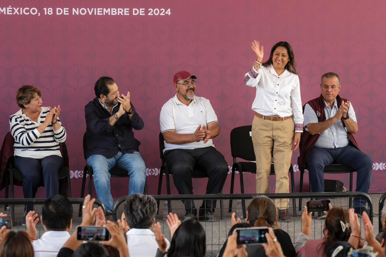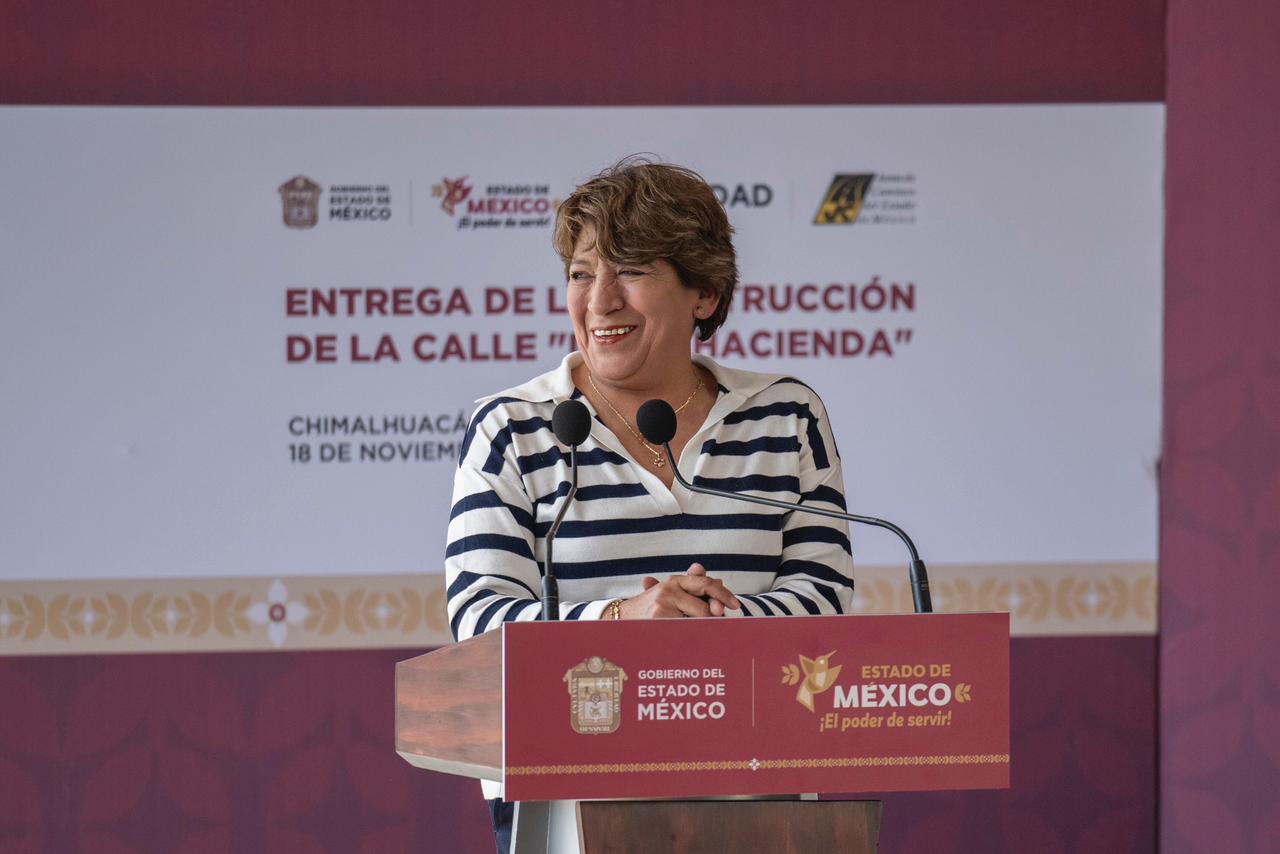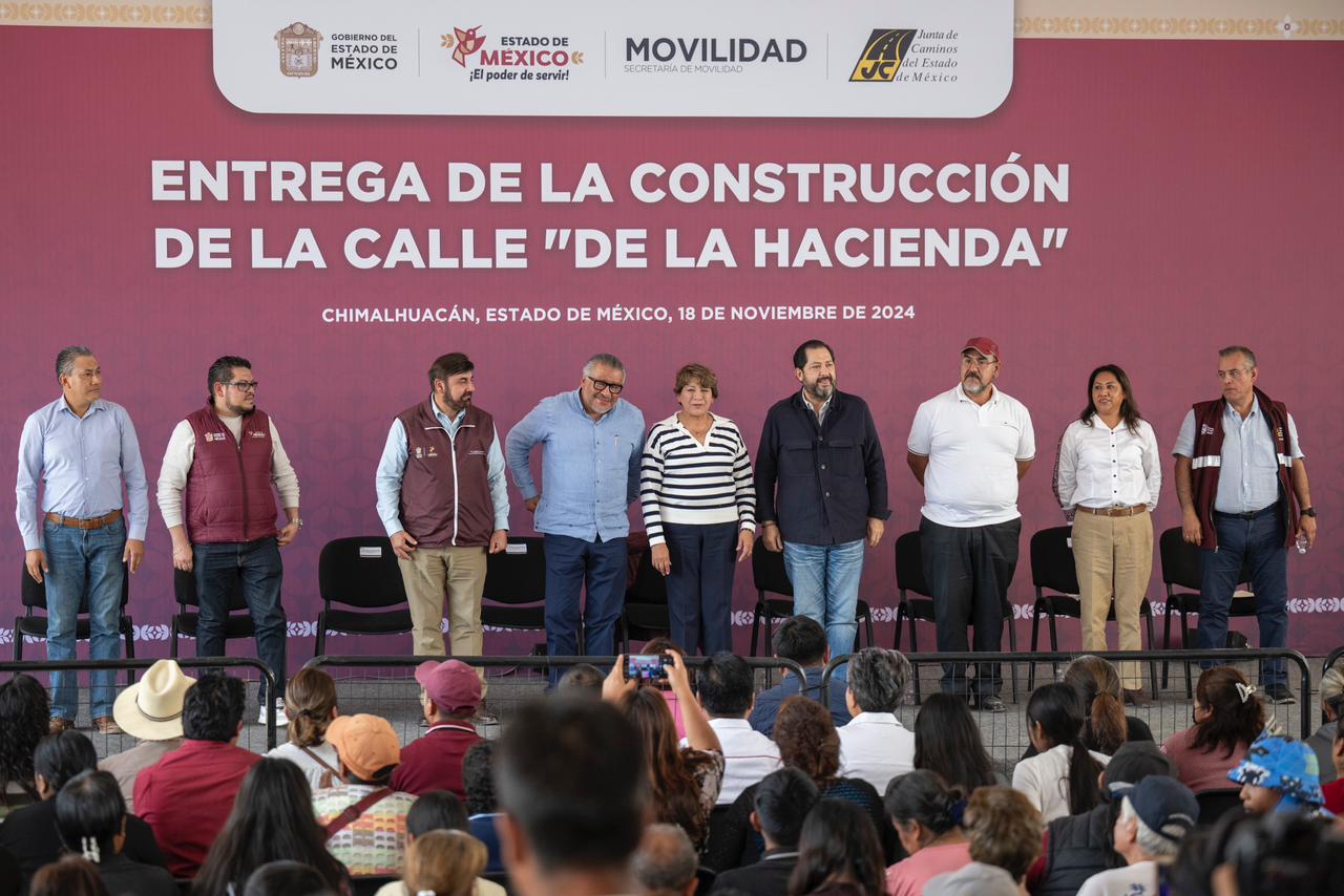 La Gobernadora del Estado de México, Delfina Gómez Álvarez, acompañada por la Presidenta de Chimalhuacán, Xóchitl Flores Jiménez, entregó la pavimentación de la calle La Hacienda en la colonia Lomas de Buenavista, en Ejidos de Santa María Chimalhuacán, ante cientos de vecinos y autoridades federales, estatales y municipales.