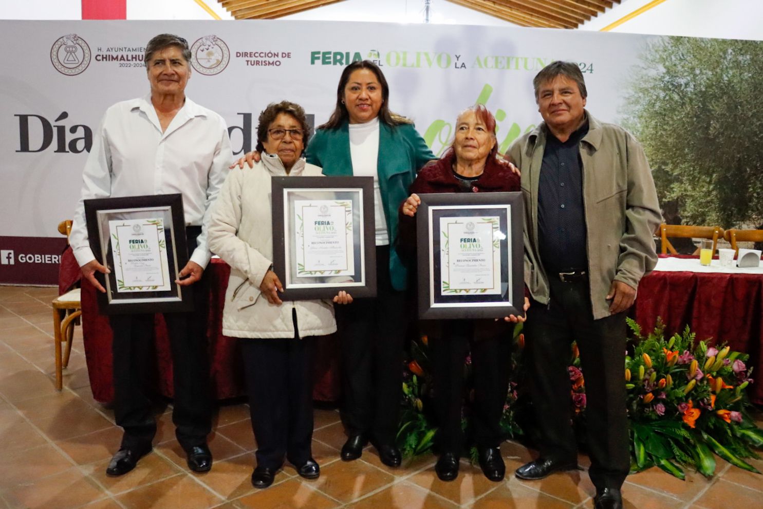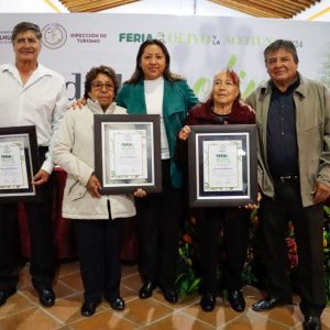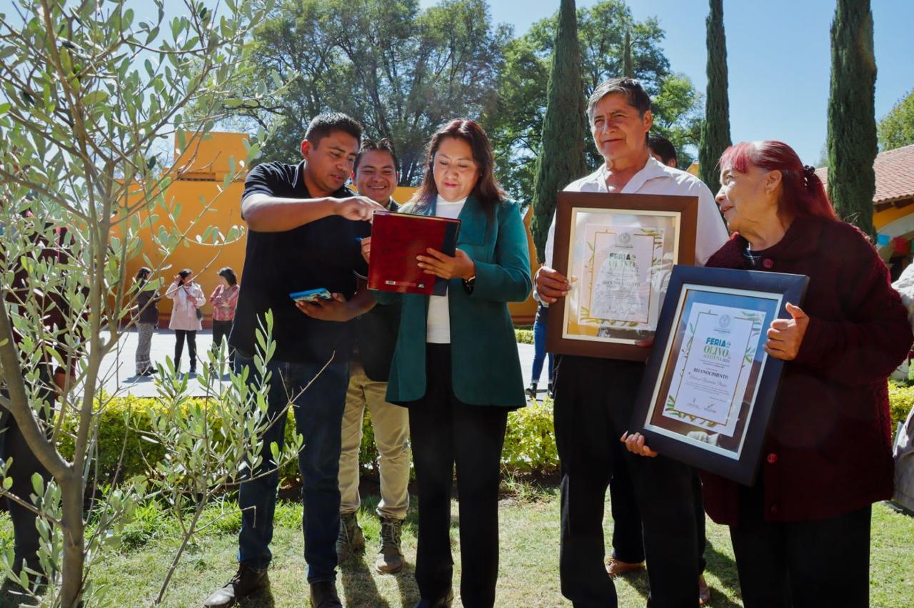 En el acto de conmemoración, la Alcaldesa Xóchitl Flores Jiménez entregó reconocimientos a los productores Santo Cruz Buendía Parra, María Macrina Socorro y Gloria Arrieta Alvarado por su destacado trabajo y conocimiento ancestral en la producción del Olivo y sus derivados, y expresó que todo aquel que participe en la Feria del Olivo y la Aceituna 2024, que se realizará del 28 de noviembre al 1 de diciembre en el barrio Xochiaca, recibirán reconocimientos por su invaluable labor.