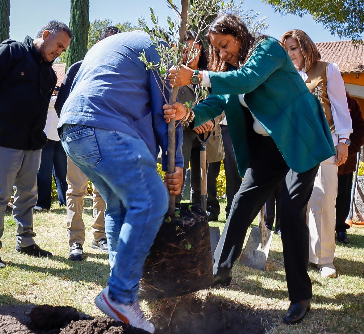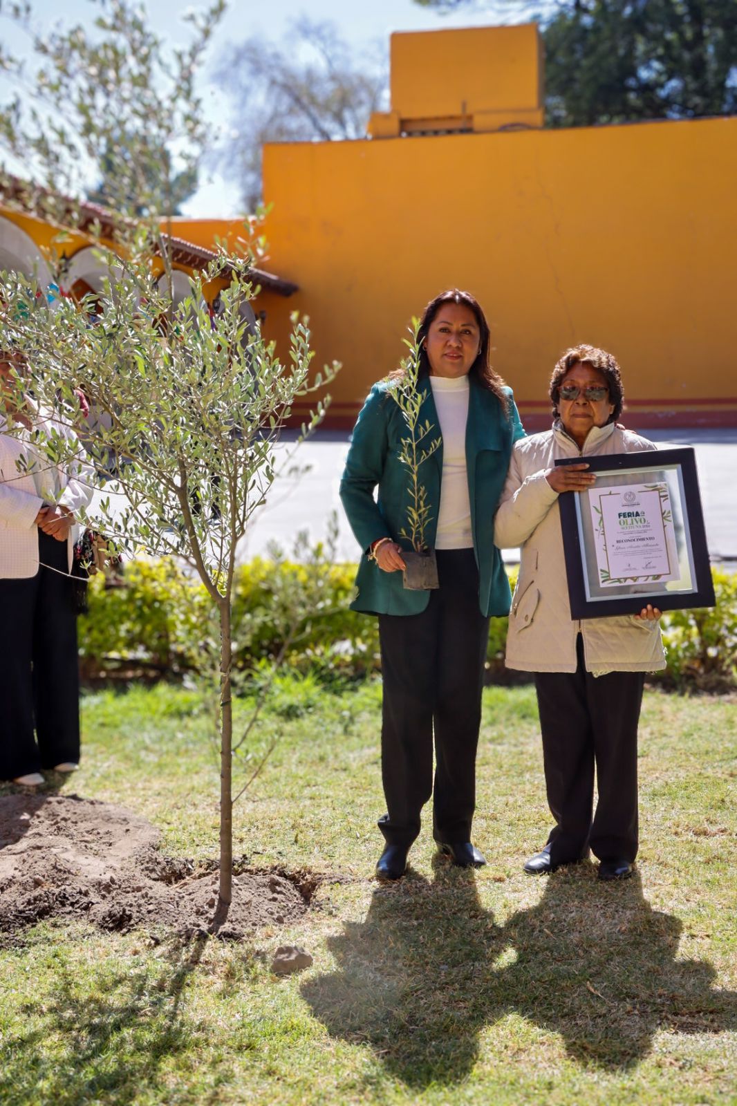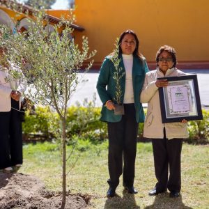 En un espacio del jardín del Museo “Chimaltonalli”, ubicado en la Cabecera Municipal, la Alcaldesa Flores Jiménez, acompañada de integrantes del H. Cuerpo Edilicio y de productores locales, adoptó y plantó un árbol de olivo de más de tres años de edad, el cual simboliza la paz, la sabiduría y la esperanza, y que fue donado por el Departamento de Fomento Agropecuario y Forestal de la Dirección de Desarrollo Económico del Ayuntamiento.