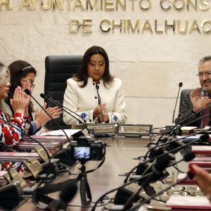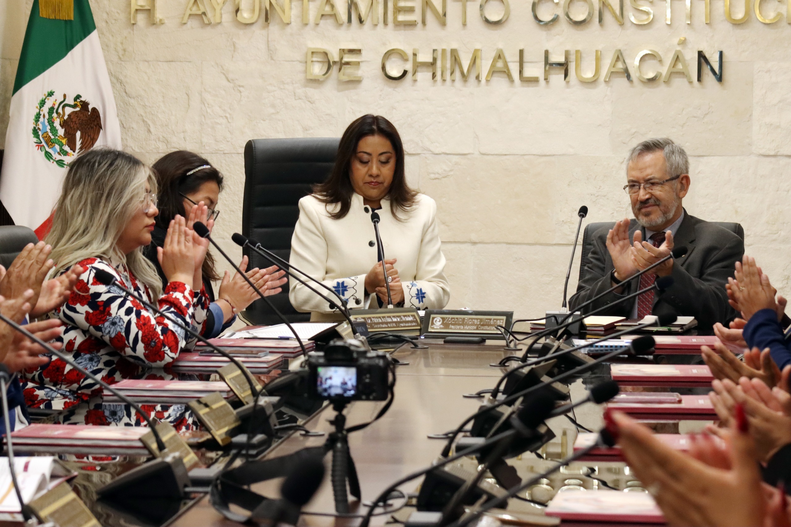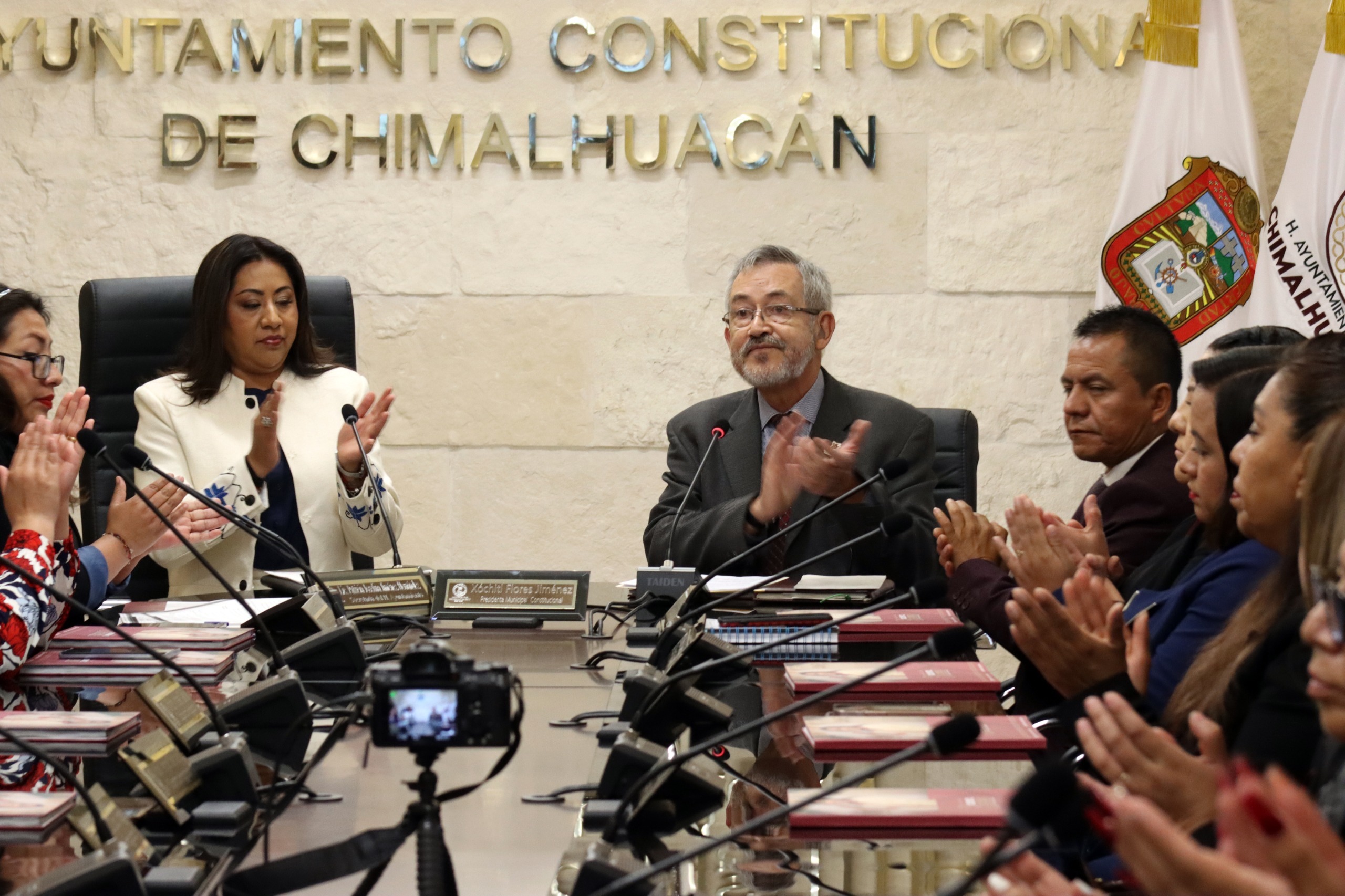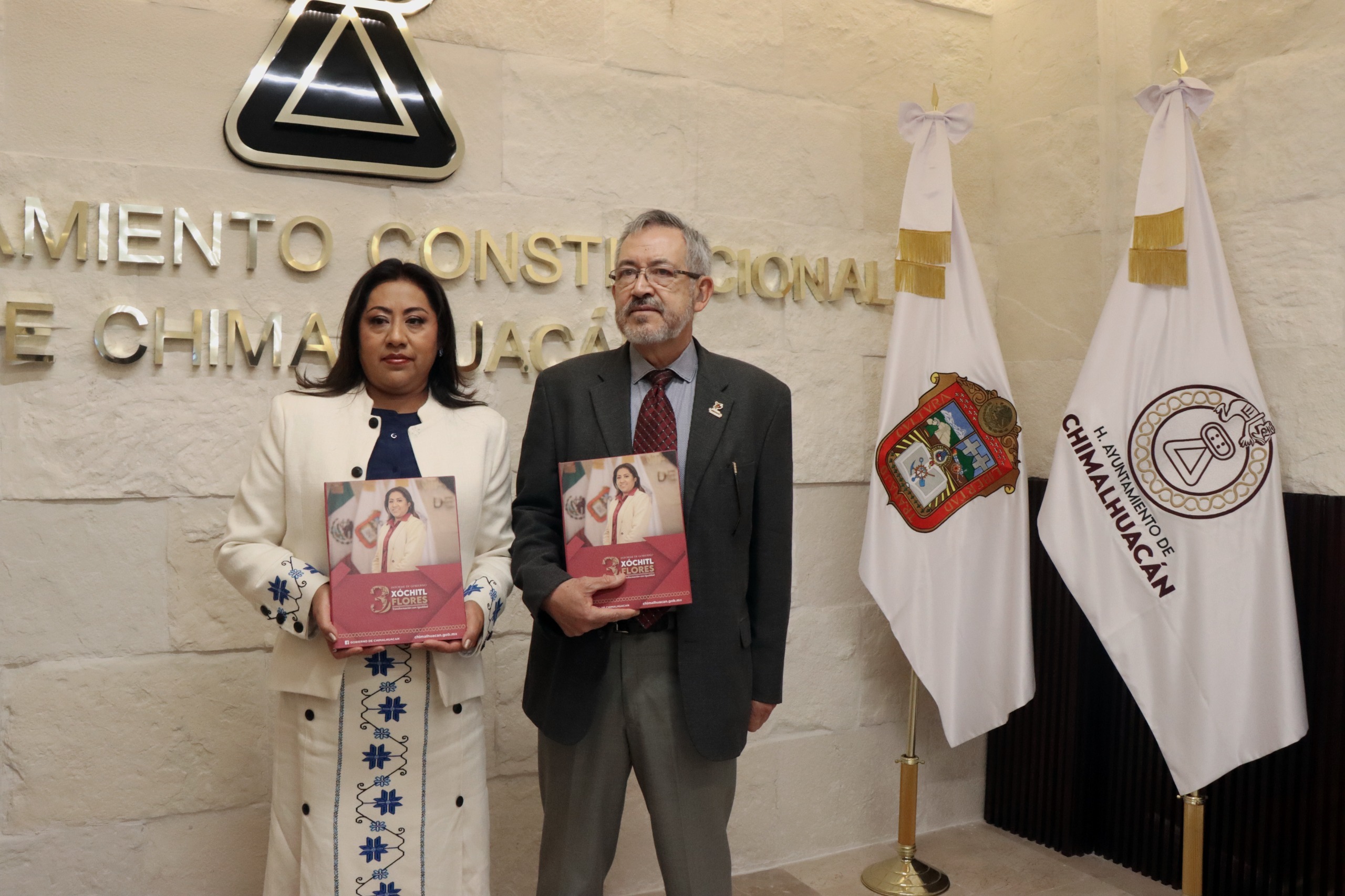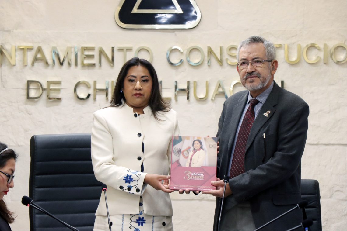 En sesión solemne de cabildo, la Presidenta Municipal de Chimalhuacán, Xóchitl Flores Jiménez, entregó su Tercer Informe de Gobierno a los integrantes del Honorable Cuerpo Edilicio, ante la presencia del Subsecretario de Educación Superior y Normal del Estado de México, Victor Sánchez González, en representación de la Gobernadora, Mtra. Delfina Gómez Álvarez, con fundamento y atención a los artículos 128 fracción VI de la Constitución Política de los Estados Unidos Mexicanos, así como 17 y 48 fracción XV de la Ley Orgánica Municipal.