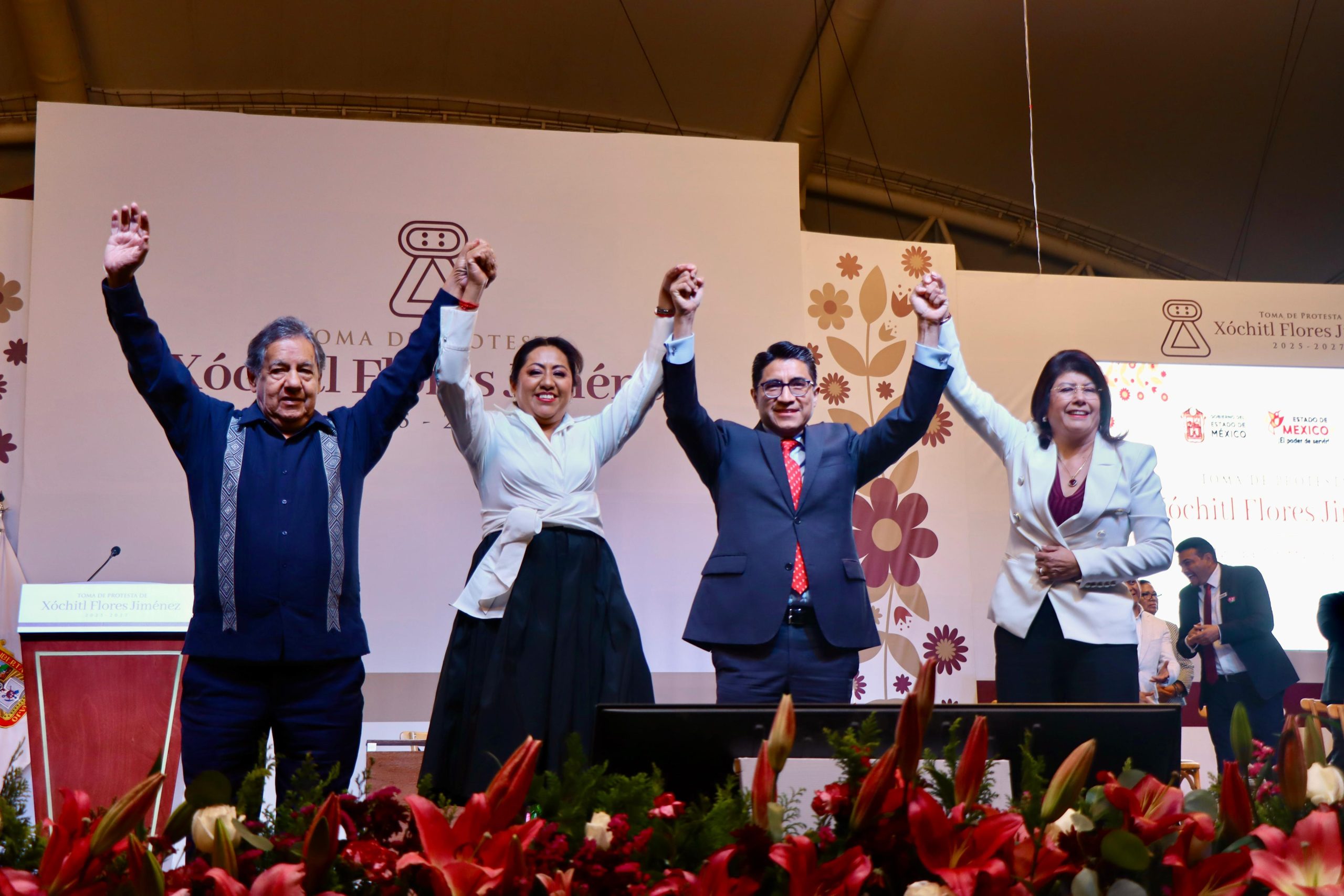 Acompañada de miles y miles de simpatizantes que se dieron cita en el Recinto Ferial y luego de ser electa con más de 146 mil votos en las urnas el pasado 2 de junio, recibiendo el respaldo y confianza de la ciudadanía, Xóchitl Flores Jiménez tomó protesta como Presidenta Municipal de Chimalhuacán para el periodo 2025-2027 ante el titular de la Consejería Jurídica, lic. Jesús George Zamora, representante de la gobernadora del Estado de México, maestra Delfina Gomez Álvarez.