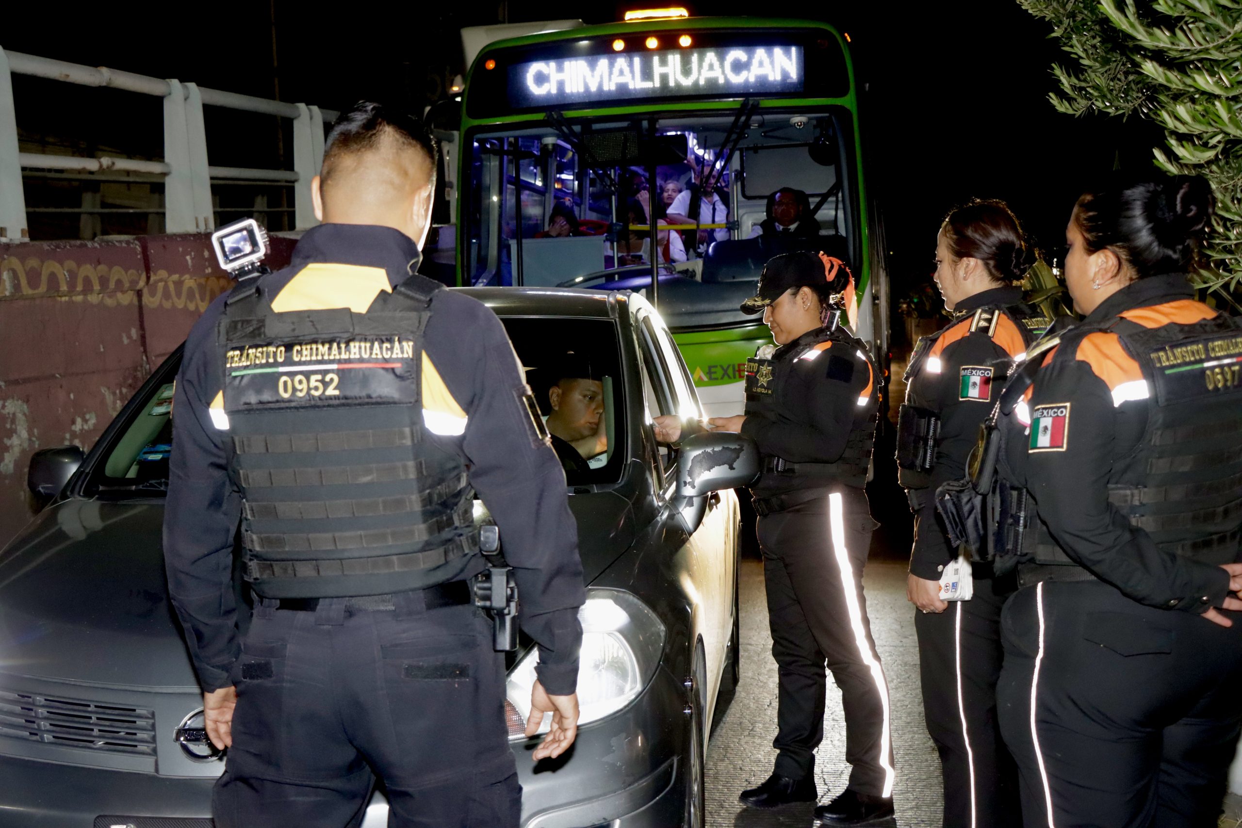 Con el objetivo de fortalecer las medidas preventivas y garantizar una circulación más segura para conductores y peatones, la Dirección General de Seguridad Ciudadana y Tránsito Municipal de Chimalhuacán implementa constantemente puestos de control en el carril confinado del Mexibús línea III. En esta ocasión, el puesto de control se realizó a la altura de la Av. Bordo de Xochiaca y Av. de las Torres, por donde a diario circulan miles de vehículos.