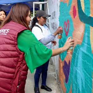 En el marco del combate a la doble alerta de género y como parte del proyecto para atender la Alerta de Violencia de Género contra las Mujeres (AVGM), en Chimalhuacán está en marcha el programa “Senderos Seguros” con la creación de murales en diversos puntos estratégicos del municipio. Con los murales se busca fomentar el empoderamiento femenino, la lucha por la igualdad de género, el sentido de pertenencia e identidad, así como la participación activa de las mujeres en la transformación social y en la construcción de un futuro libre de violencia.