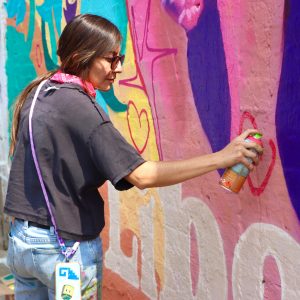 La realización de los murales estuvo encabezada por Kryztina Ríos, muralista, artista de graffiti, ilustradora y docente egresada de la Facultad de Artes y Diseño de la UNAM. Originaria de Chimalhuacán, Kryztina integró las voces de la comunidad en el proceso creativo de los murales, lo que permitió que estos reflejaran la identidad y las tradiciones del municipio. Este proyecto fue inclusivo y permitió la participación activa de vecinos, especialmente de los jóvenes de las secundarias involucradas y de la red de Mujeres Constructoras de la Paz (MUCPAZ), quienes contribuyeron en la creación de estas obras de arte.