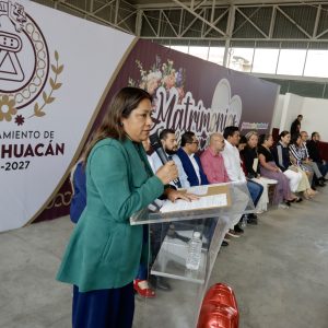 La alcaldesa de Chimalhuacán dijo a las parejas que en el matrimonio se comparten sueños y responsabilidades, y aunque es una institución que ha evolucionado, “en esencia sigue siendo la unión que se basa en la voluntad de dos personas, es un acto que otorga certeza jurídica a las parejas que el día de hoy han venido con libertad y pleno consentimiento de comprometerse el uno con el otro”.
