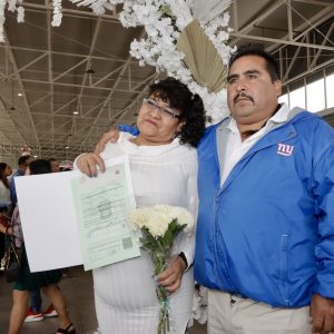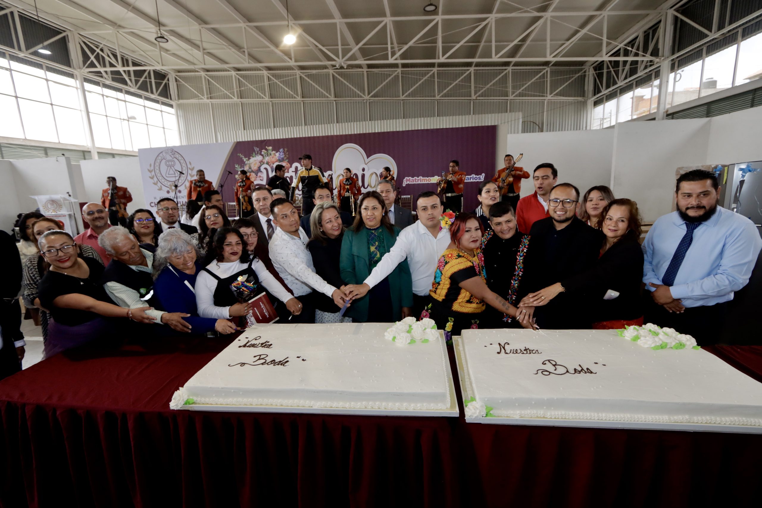 De esta forma y entre besos, abrazos, pasteles, rifas, música de orquesta y mariachis, las parejas chimalhuaquenses se unieron en matrimonio de forma gratuita en el evento Matrimonios Colectivos 2025, que incluyeron ocho matrimonios igualitarios, efectuados por el Ayuntamiento de Chimalhuacán y las oficialías del Registro Civil del Estado de México.