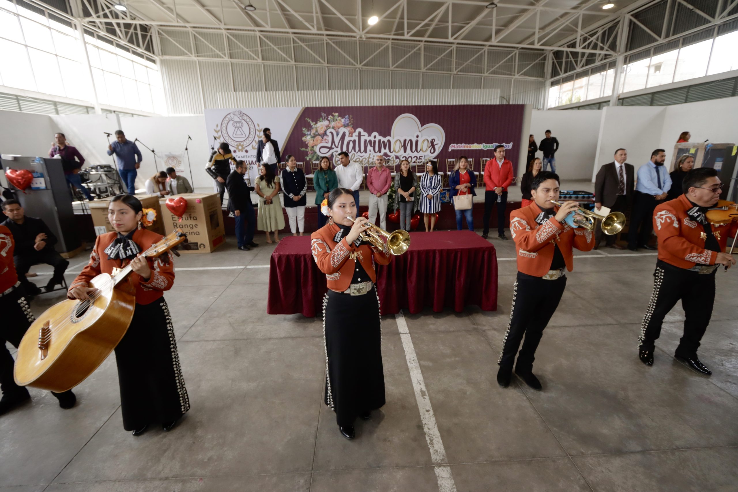 También, el cuerpo edilicio y la presidenta Xóchitl Flores, quienes autorizaron en cabildo la realización de los Matrimonios Colectivos 2025 de manera gratuita, rifaron entre las parejas refrigeradores, estufas, camas, hornos de microondas y licuadoras. Ninguna pareja se fue con las manos vacías, pues todas recibieron un juego de vasos de vidrio, el cual estrenarán en su nueva vida en matrimonio.