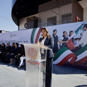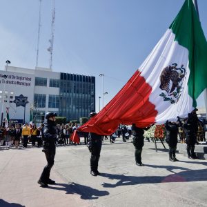 En atención al llamado nacional de la presidenta de México, Dra. Claudia Sheinbaum Pardo, la alcaldesa de Chimalhuacán encabezó el acto de conmemoración efectuado en la explanada del Centro de Control, Comando, Comunicación y Cómputo (C4), que contó con el abanderamiento de escoltas de diversas escuelas de educación básica del municipio, entre ellas la escolta de la Escuela Secundaria Técnica No. 78 “Guillermo Massieu Helguera”.