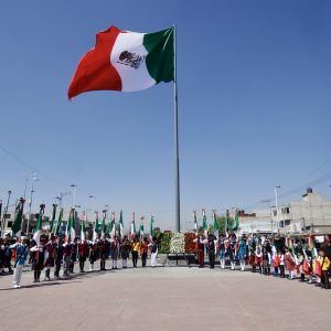 “Hoy 24 de febrero, recordamos el sacrificio y esfuerzo de quienes lucharon por nuestra independencia y libertad, este símbolo tricolor representa la unidad como pueblo de México, un pueblo que a pesar de las diferencias y desafíos ha logrado empoderarse ante el mundo como una nación soberana e independiente, pero sobre todo como un pueblo unido y orgulloso de su bandera”, externó la presidenta de Chimalhuacán, Xóchitl Flores Jiménez, durante la ceremonia cívica realizada para conmemorar el Día de la Bandera.