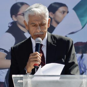 En representación de la gobernadora, maestra Delfina Gómez Álvarez, el coordinador académico y de operación educativa de Servicios Educativos Integrados al Estado de México (SEIEM), maestro Eduardo Martínez Castro, expresó que la bandera es el símbolo más alto de nuestra identidad, historia y soberanía, el cual nos recuerda que México se construye todos los días con el esfuerzo de su gente, con educación y valores.