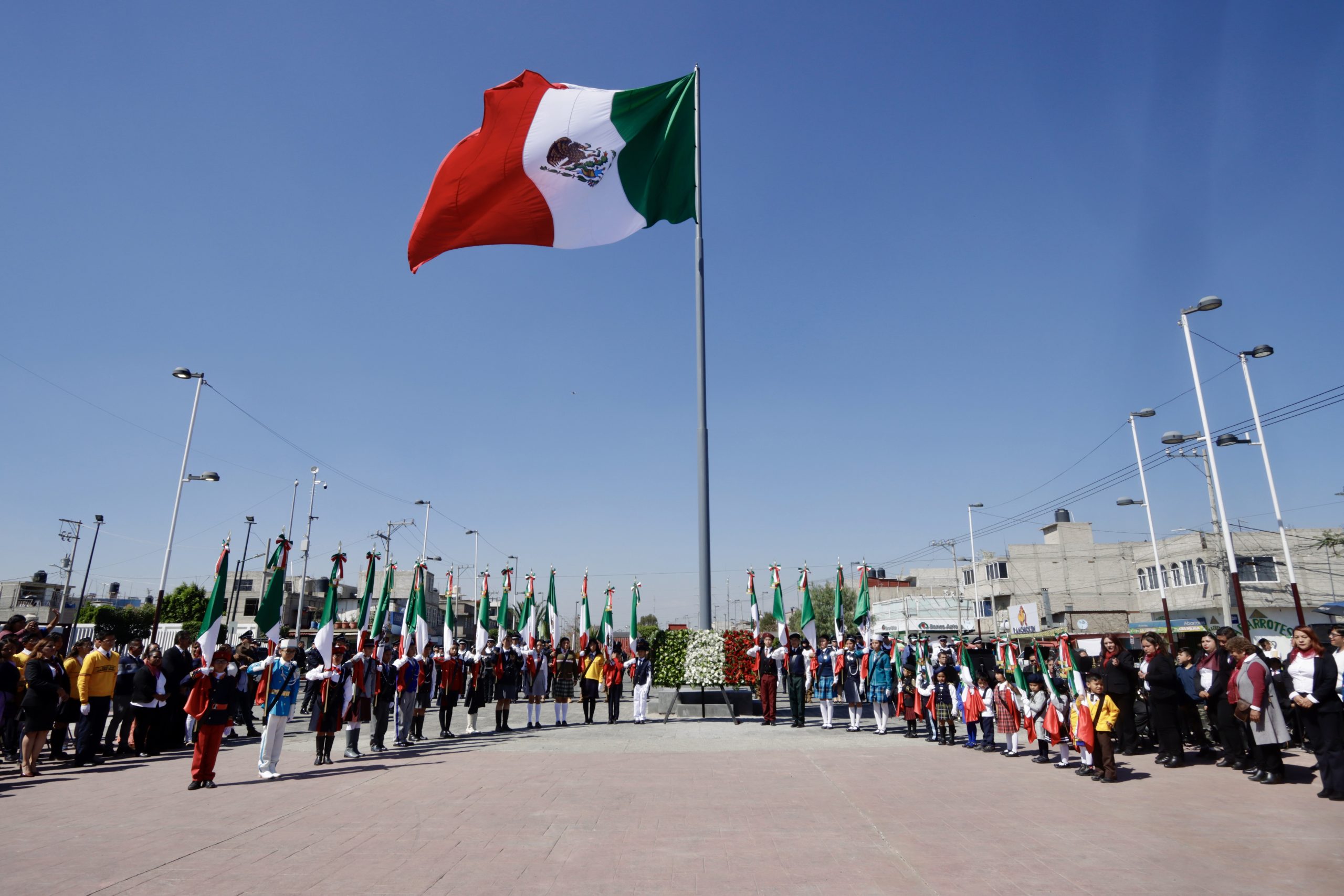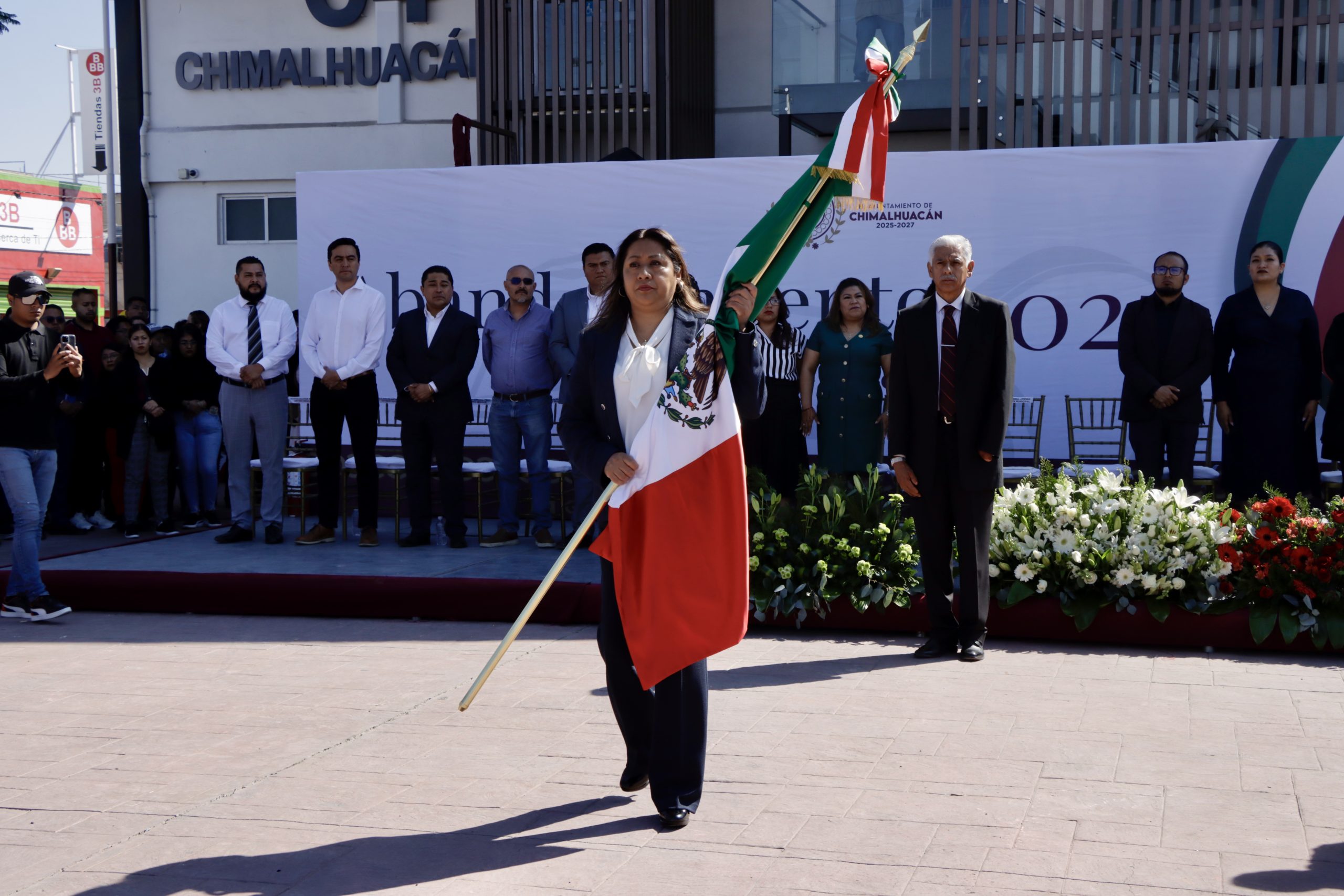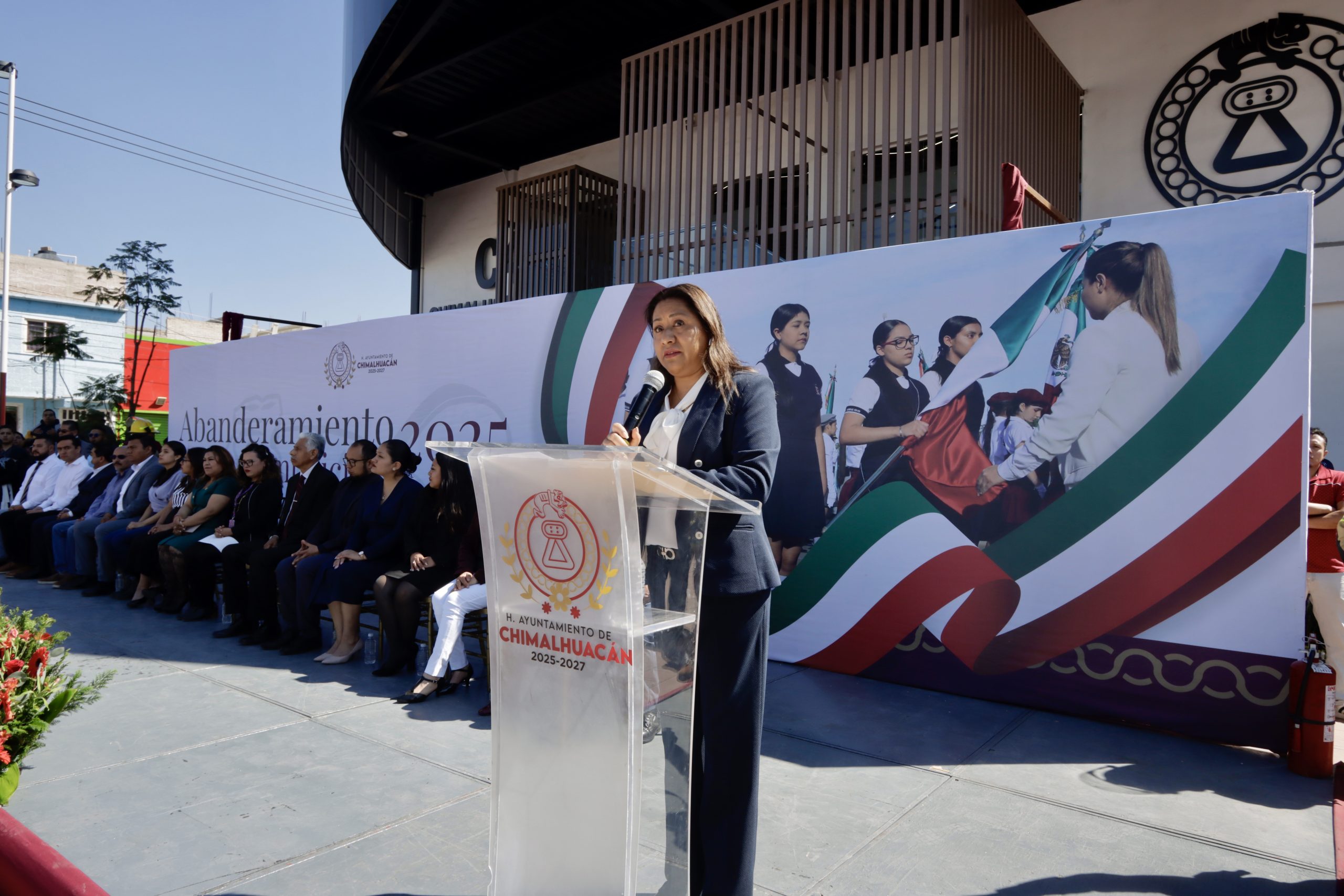 En el acto de conmemoración del Día de la Bandera se incineró el lábaro patrio de la escolta de la Secundaria “Guillermo Massieu Helguera”, quien recibió una nueva bandera de manos de la presidenta de Chimalhuacán. Asimismo, el cuerpo edilicio, las autoridades del Estado de México y la diputada federal del distrito 25, Leyde Avilés Domínguez, entregaron kits de abanderamiento a escoltas de escuelas de educación básica. Acto seguido, la alcaldesa Xóchitl Flores tomó protesta a las escoltas.