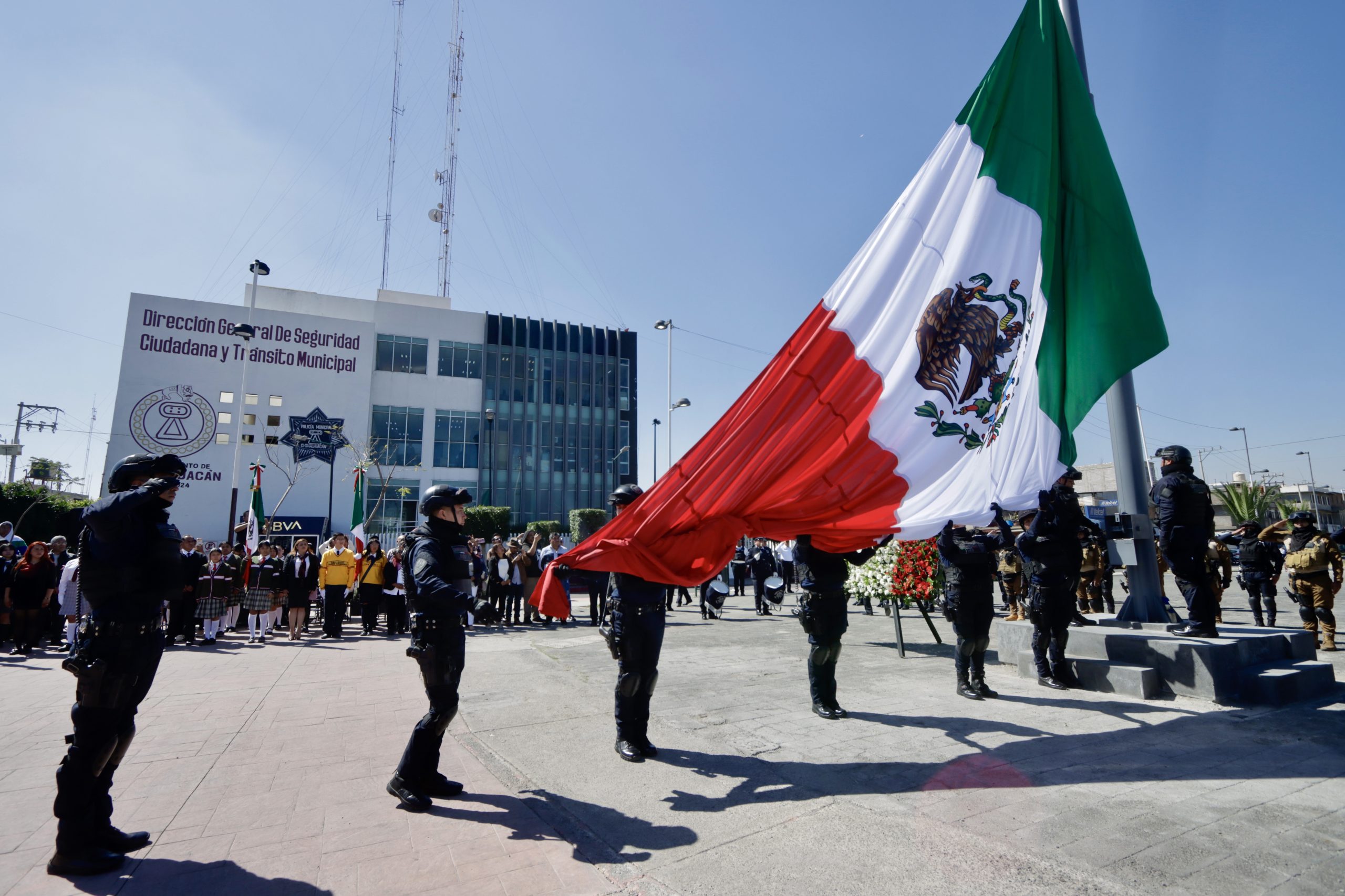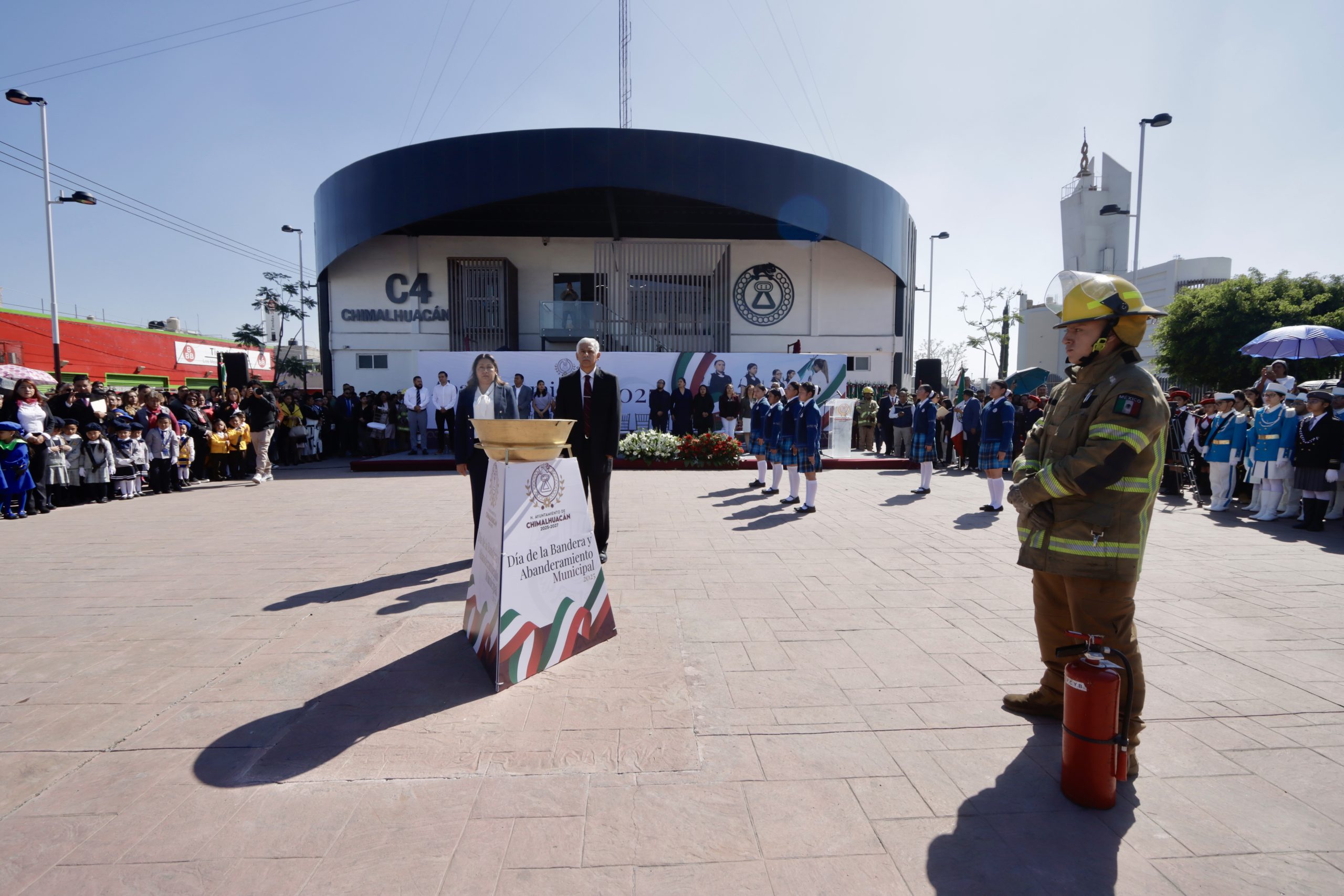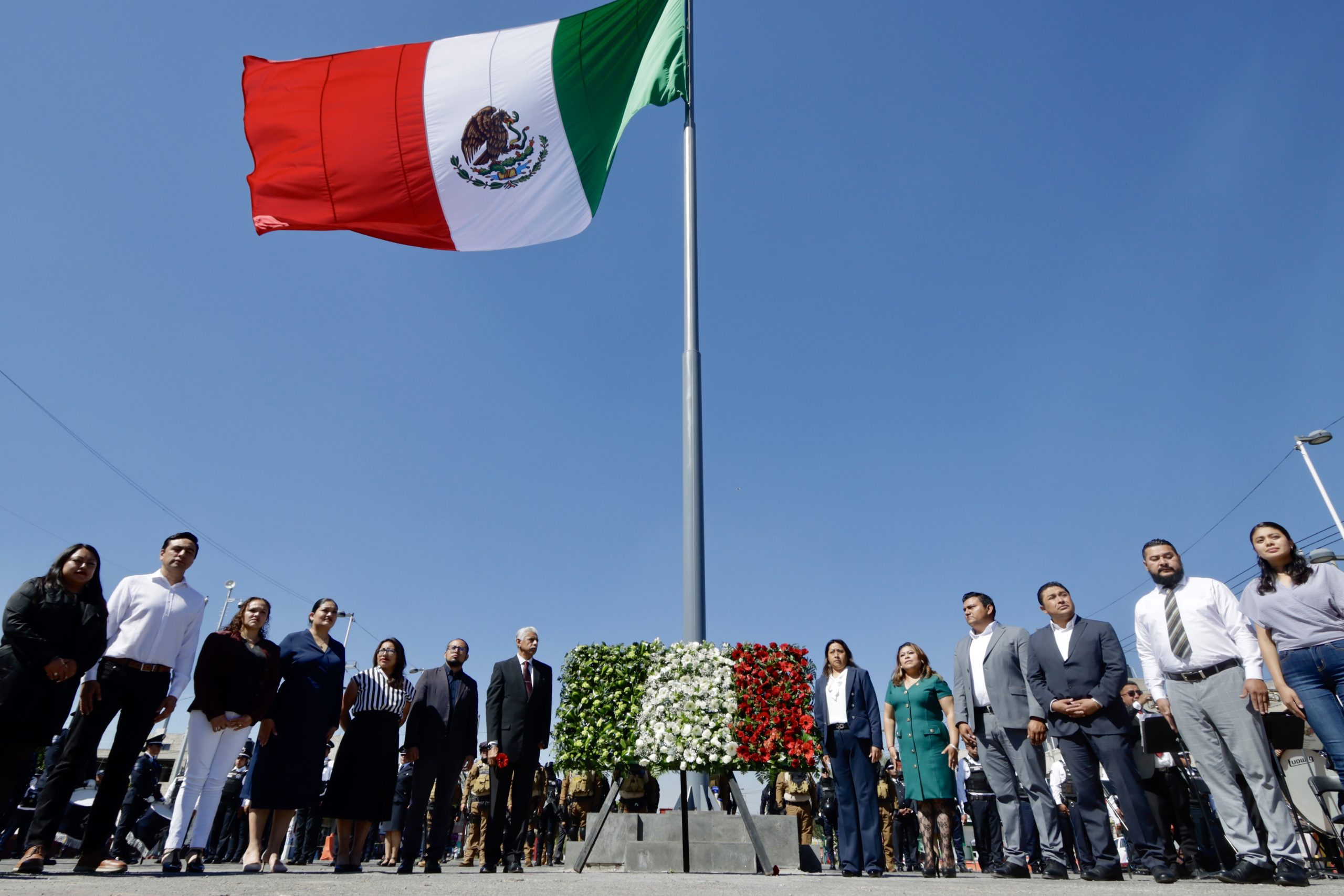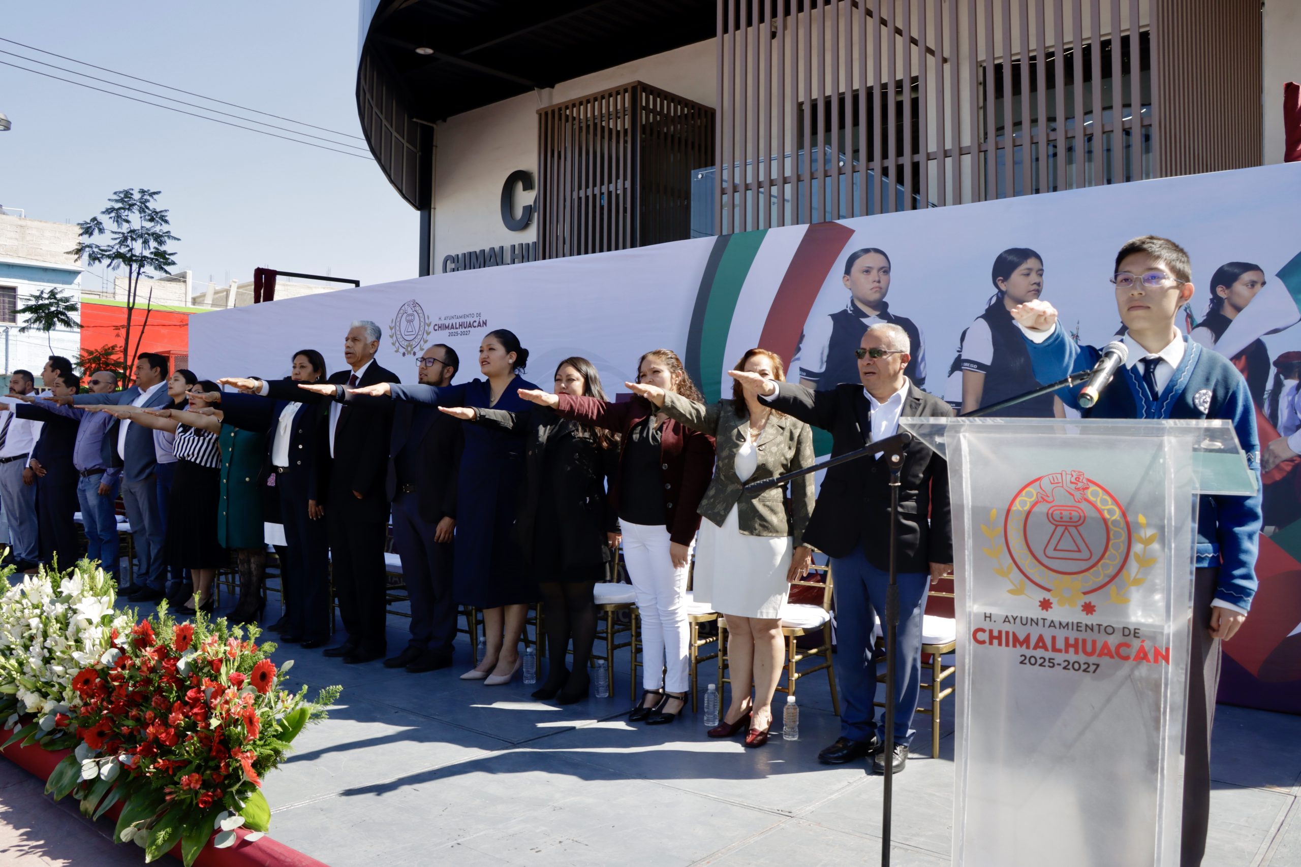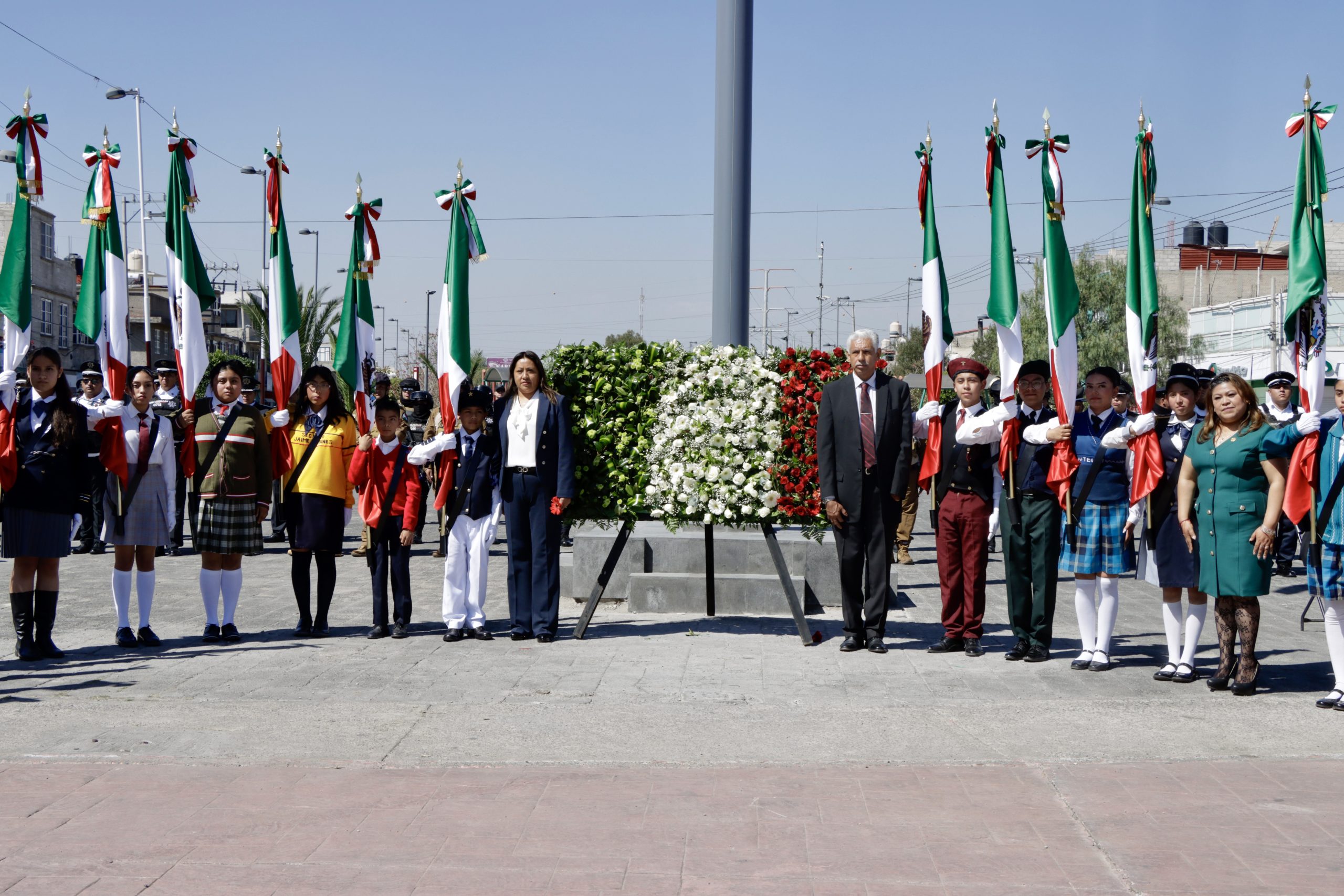 En atención al llamado nacional de la presidenta de México, Dra. Claudia Sheinbaum Pardo, la alcaldesa de Chimalhuacán encabezó el acto de conmemoración efectuado en la explanada del Centro de Control, Comando, Comunicación y Cómputo (C4), que contó con el abanderamiento de escoltas de diversas escuelas de educación básica del municipio, entre ellas la escolta de la Escuela Secundaria Técnica No. 78 “Guillermo Massieu Helguera”.
