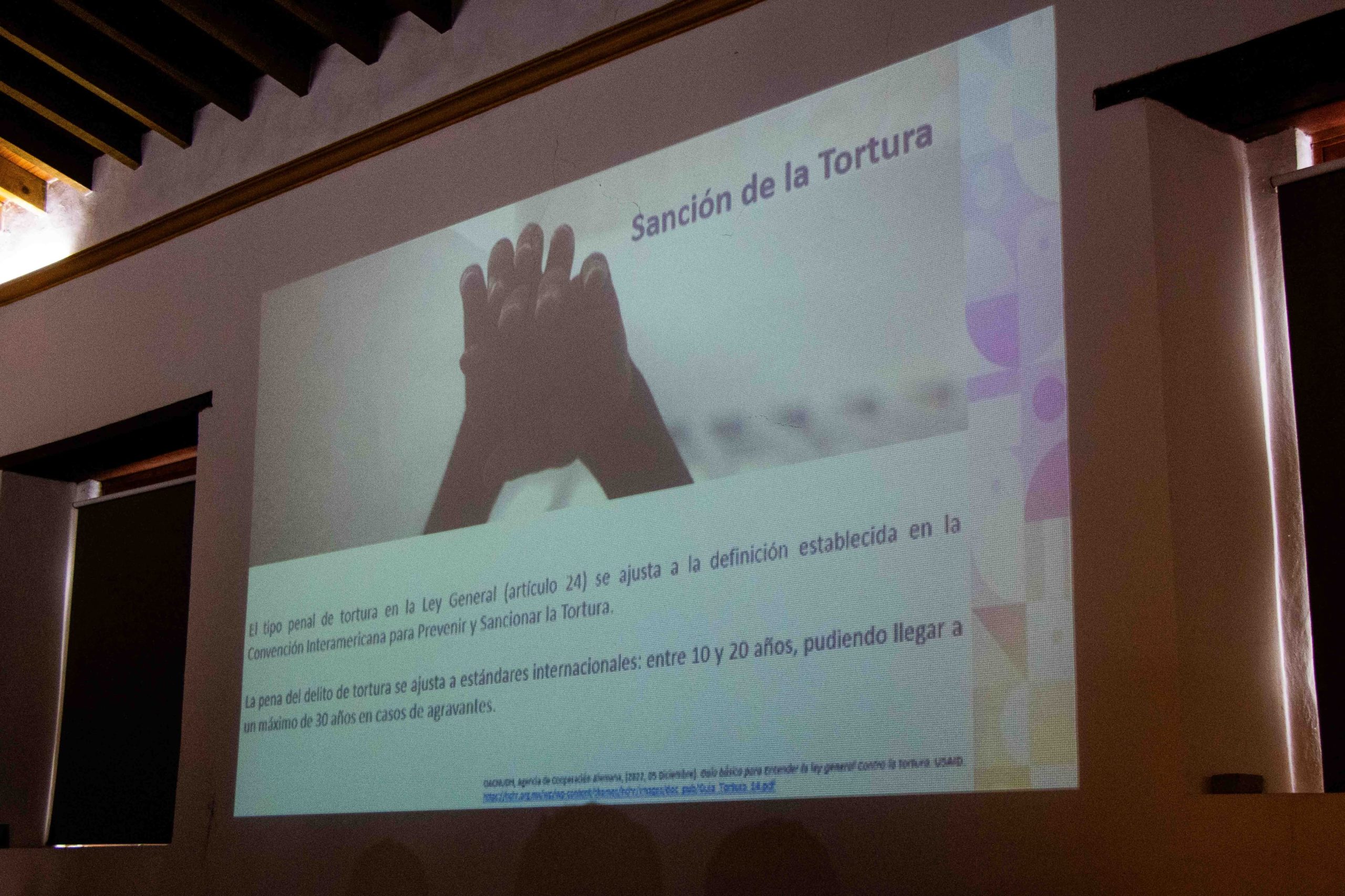 La ley en cuestión está estructurada de acuerdo con las obligaciones del Estado frente a violaciones a derechos humanos para investigar, sancionar, prevenir y reparar; y tipifica los tratos crueles, inhumanos o degradantes, agregó el capacitador Hernández Zarza. Asimismo, añadió que el delito de tortura no prescribe y la pena se ajusta a estándares internacionales: entre 10 y 20 años, pudiendo llegar a un máximo de 30 años en casos de agravantes.
